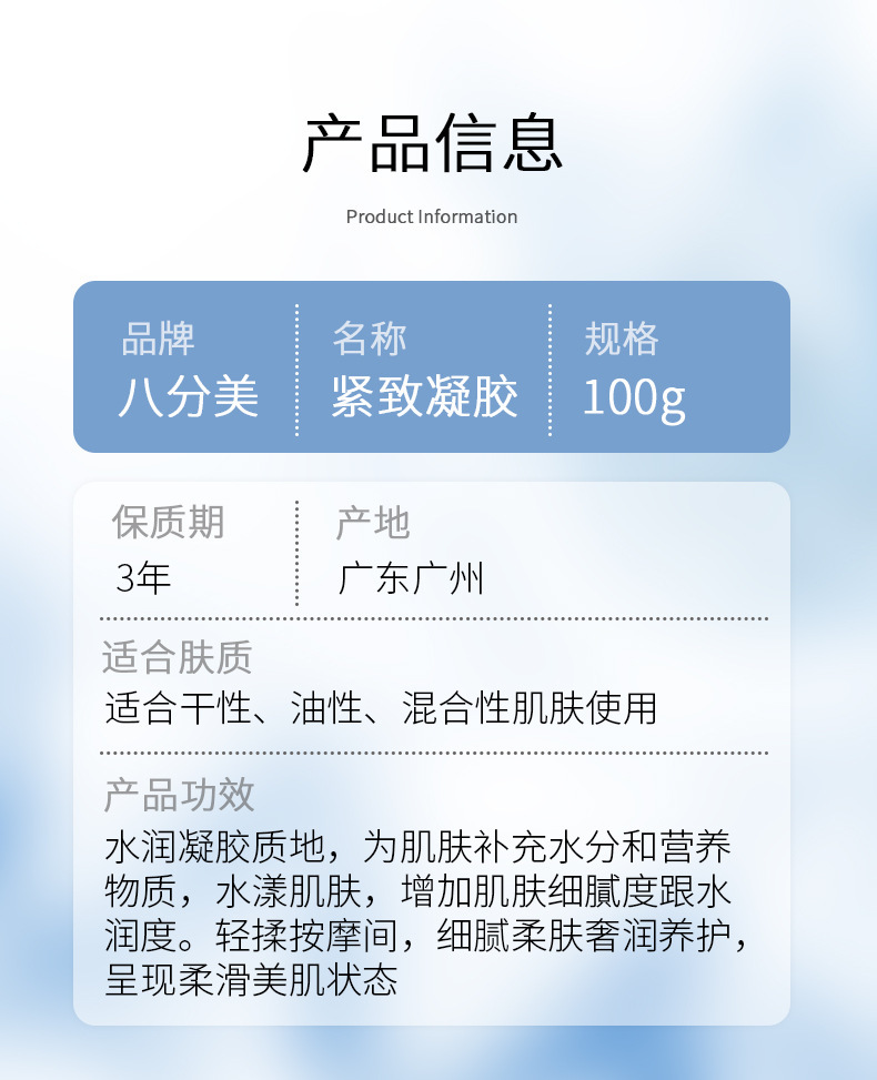![]() | firming gel 100g | 1шт: ¥13.50, 100шт: ¥9.50, 1000шт: ¥7.40 | 6125 | 5493283926460 |