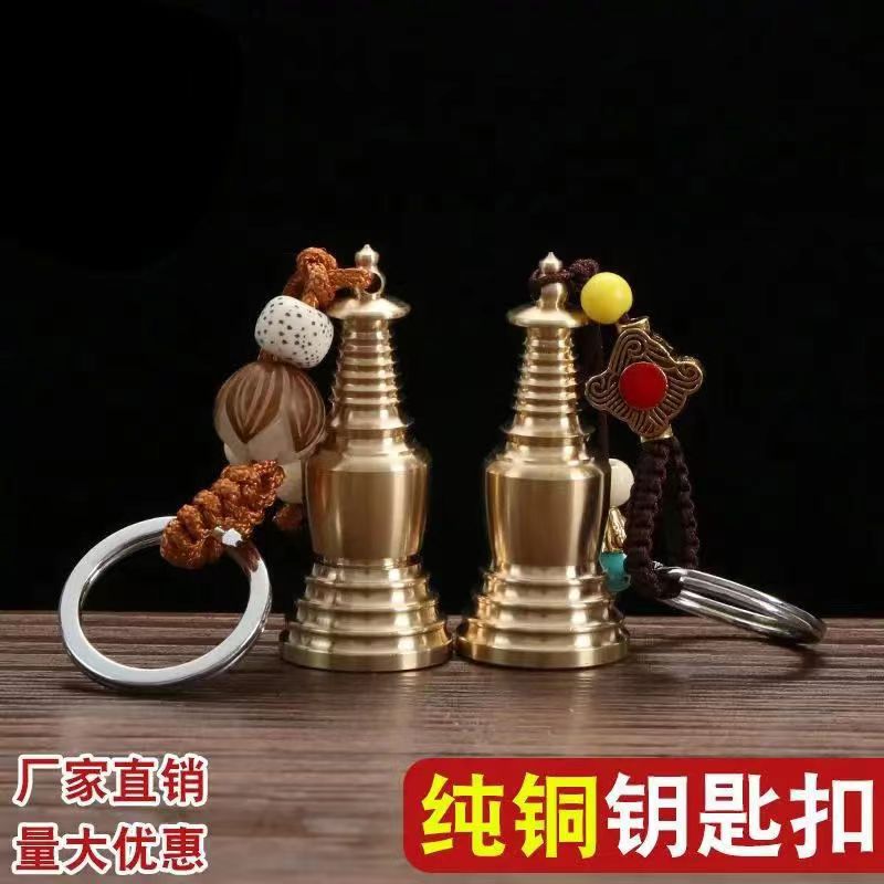 Большая белая ступа из чистой меди. Ключница Вэньчан с пандой и деньгами