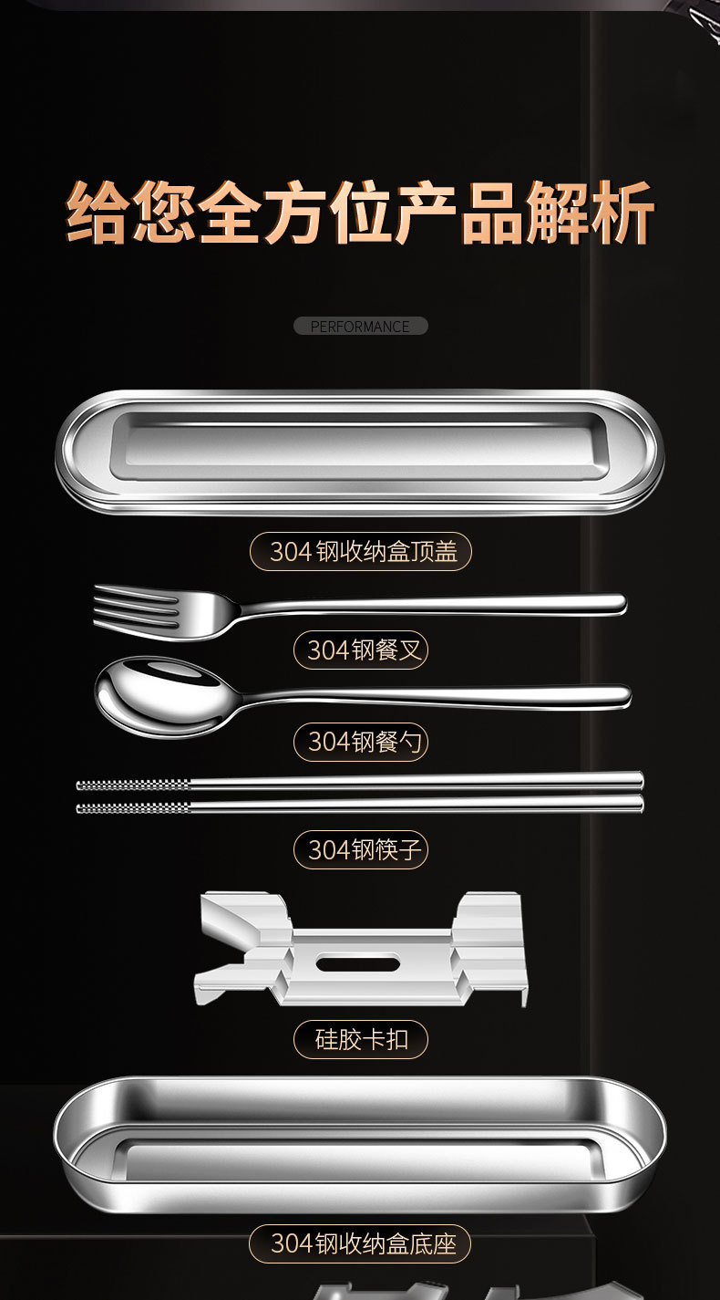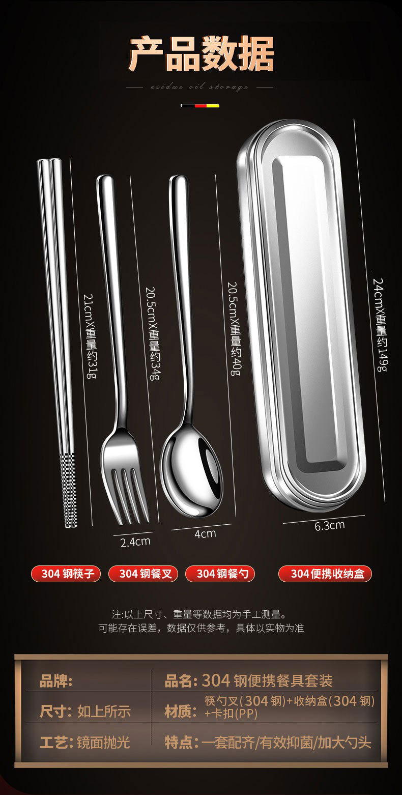 Материал Chopsticks spoon fork (304 steel) storage box (304 steel) buckle (PP)