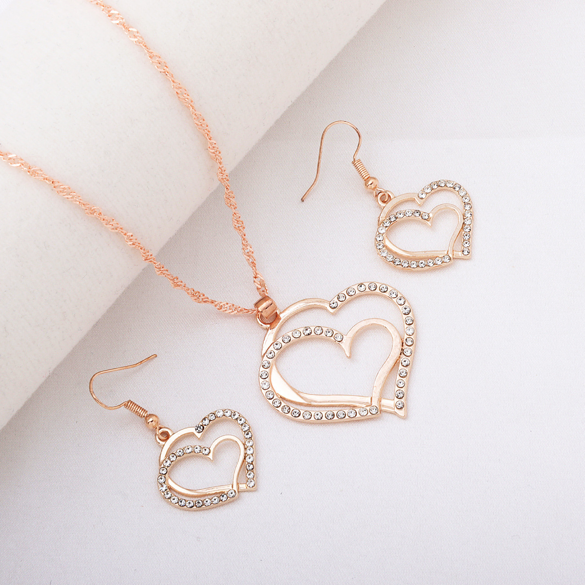 Кросс-бордерный набор: двойное ожерелье с бриллиантами, высококачественные серьги, два предмета