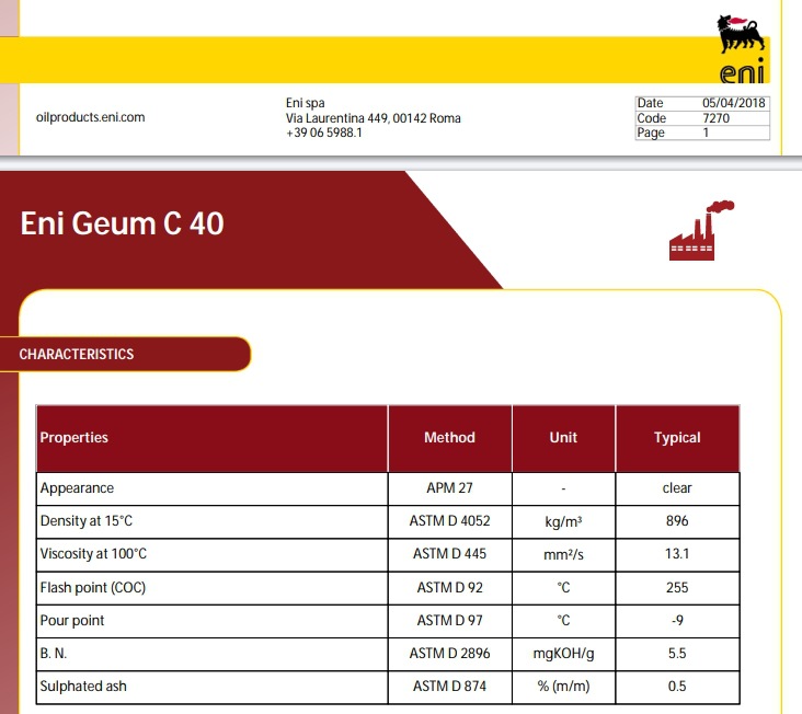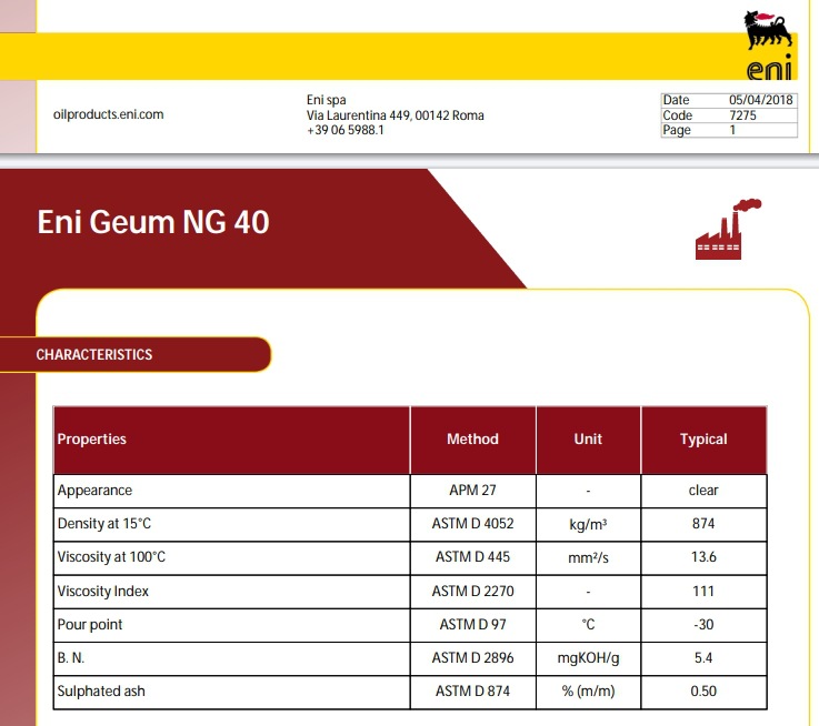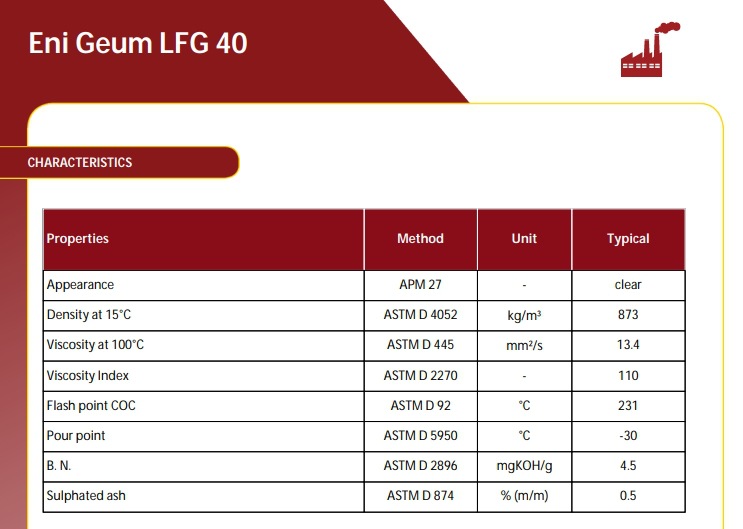 Eni Geum 40, NG40, C, E, LFG40, SX40 масло для сжигания природного газа