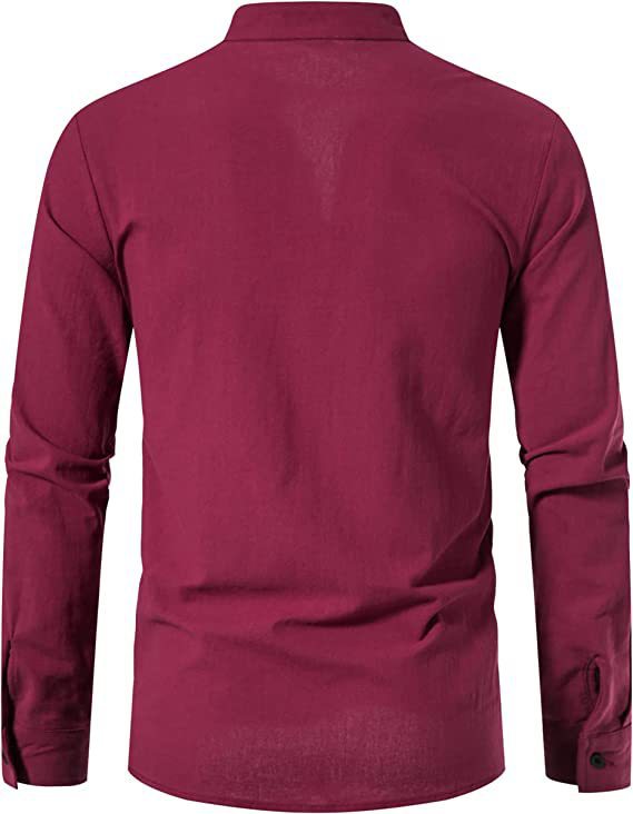 Новая рубашка Хенри из хлопка и льна для мужчин с длинным рукавом