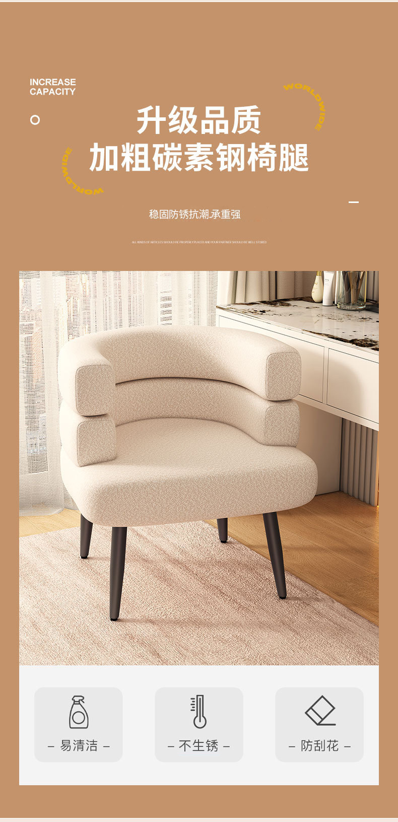 Одноместный диван из овечьего велюра для гостиной, из массива дерева, дизайн в стиле Ins, легкая роскошь, кресло для отдыха в спальне, кресло для макияжа