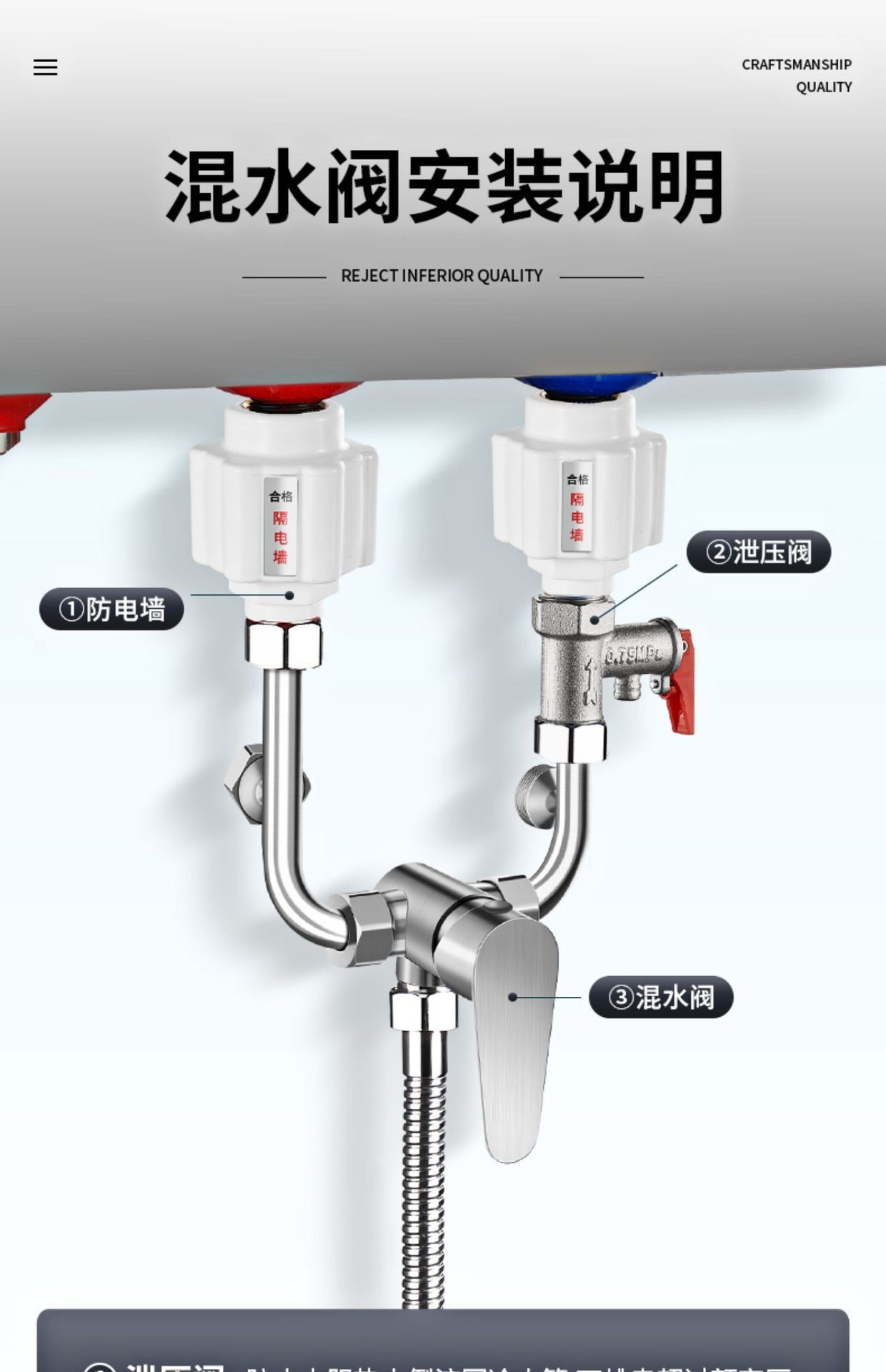 Смесительный клапан для электрического водонагревателя, открытый, смеситель для душа, U-образный клапан, полностью медный универсальный трехходовой водный клапан