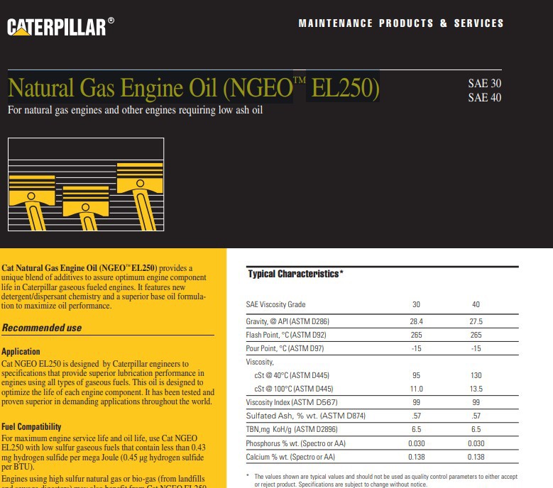Масло для газовых двигателей CAT 30/40 (NGEO EL250)