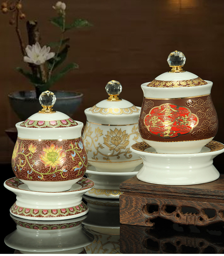 Керамическая чаша для священной воды, чаша для очищения воды с лотосом