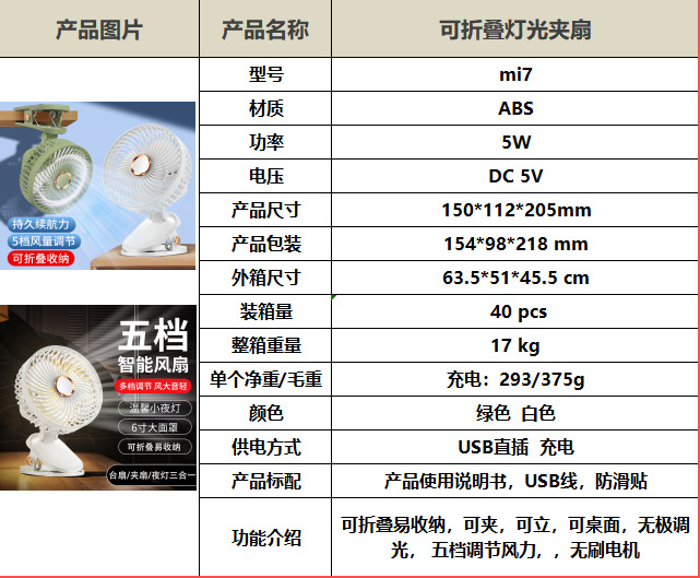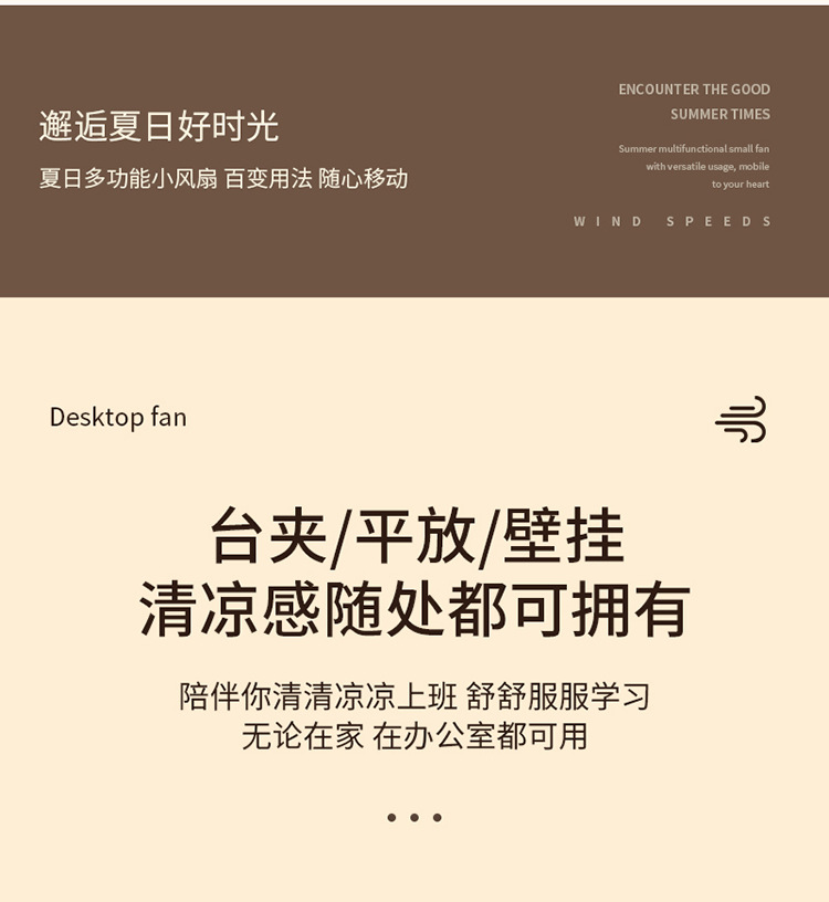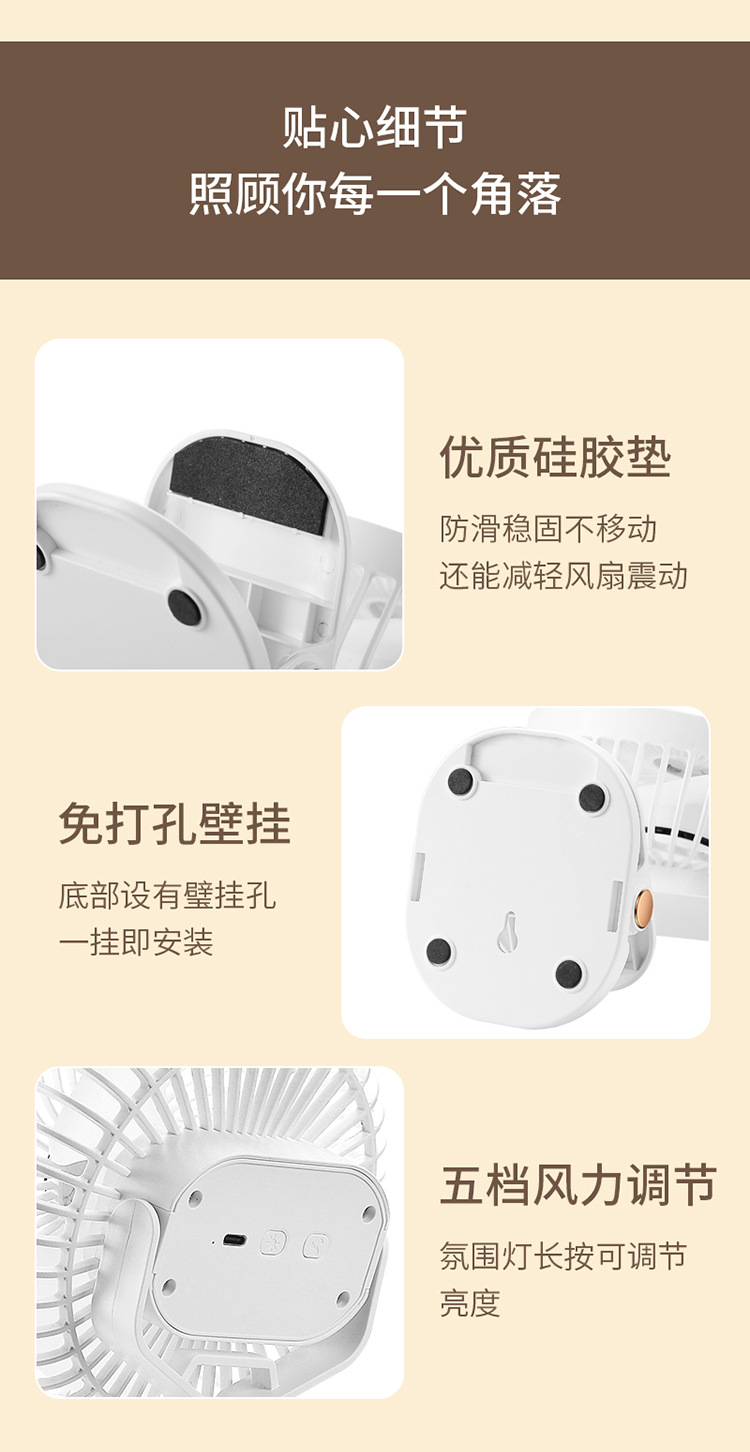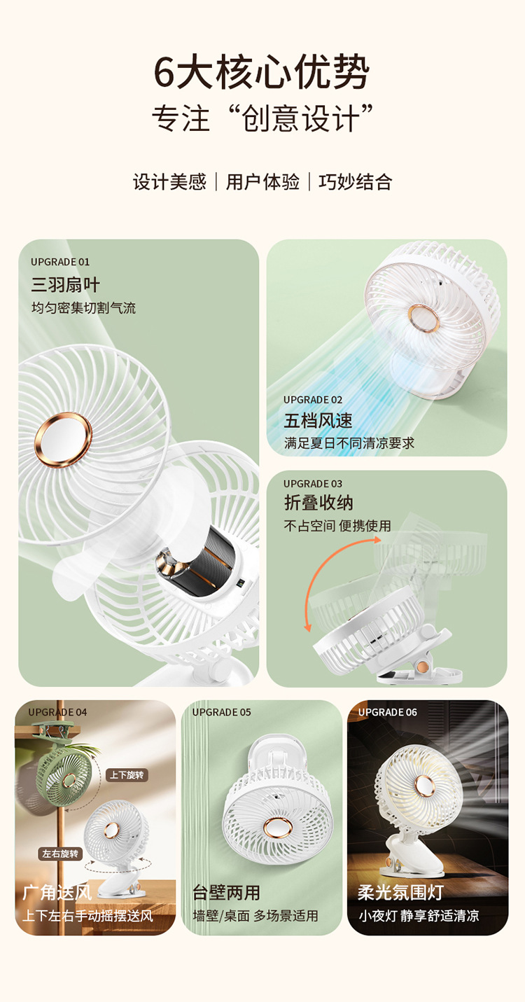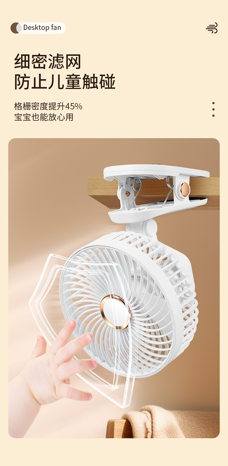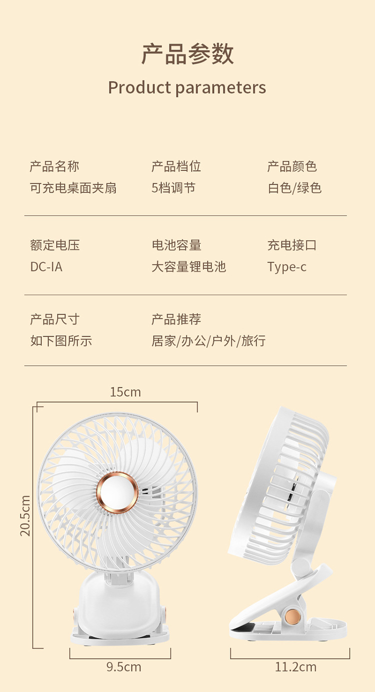 Характеристики продукта Five-speed wind adjustment, foldable and easy to store, can be placed on the desktop, can be clamped and hung on the wall, stepless dimming, brushless motor, can change the angle up and down, left and right at any time