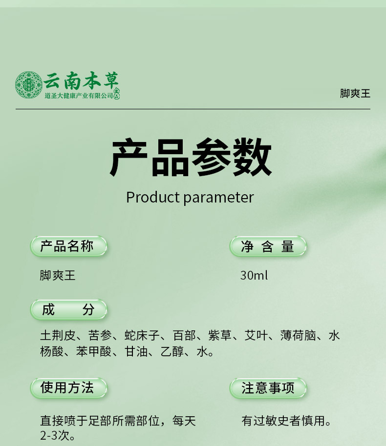 ![]() | Yunnan materia medica foot spray king 60ml | ¥3.0 / ≈ 36 ₽ | 49998836 | 5766190150630 | |