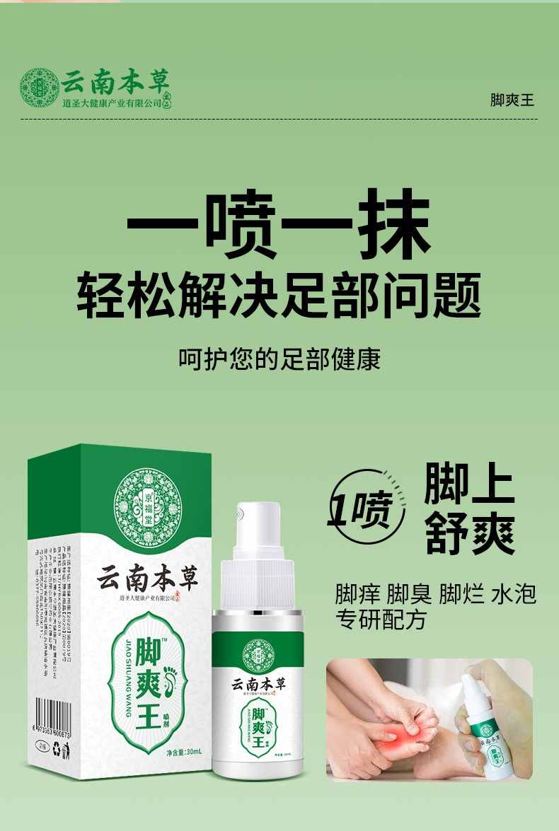 Спрей для ног Yunnan Materia Herb, от зуда, от запаха, антиперспирант, от пузырей, крем от гнили, охлаждающий спрей для ног