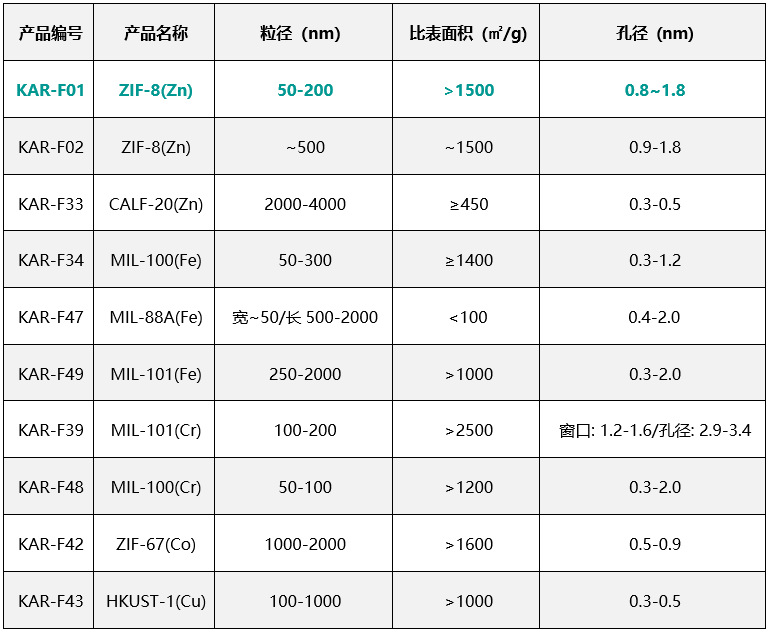 Материалы MOF металл-органической структуры ZIF-8 для газоразделения, CAS NO 59061-53-9, KAR-F01