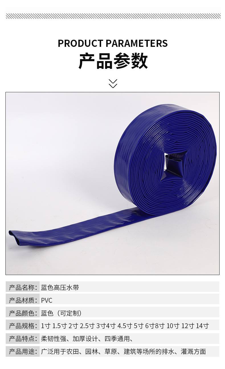 Индивидуальные синие высоконапорные водяные пояса, синие высоконапорные водяные пояса различных спецификаций, дренаж и полив на сельскохозяйственных угодьях