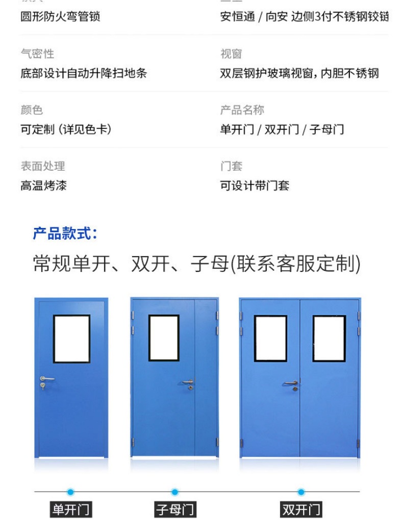 Дверь из цветного стального листа с рамой, нержавеющая сталь, противопожарная дверь для чистых помещений