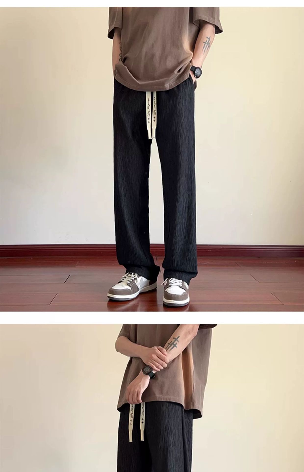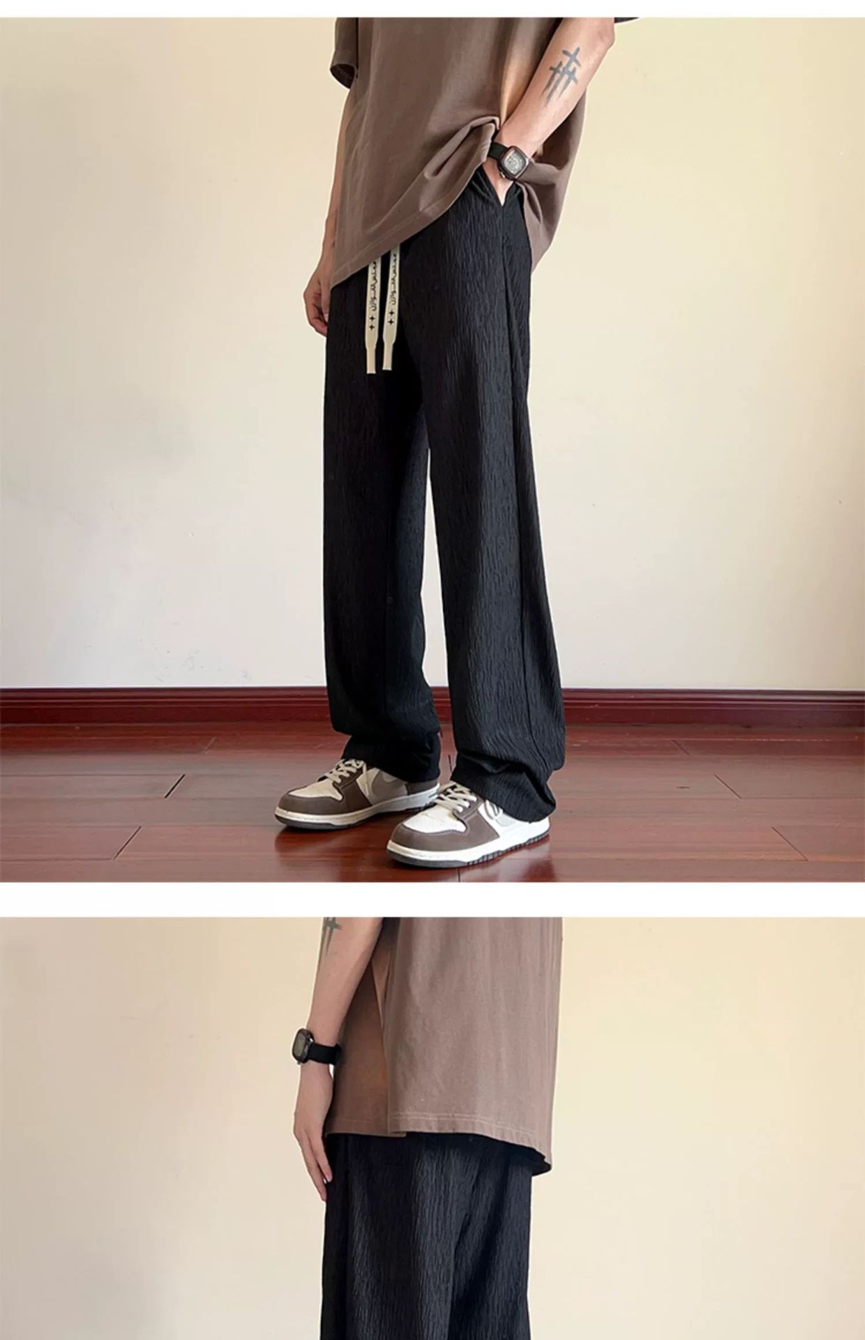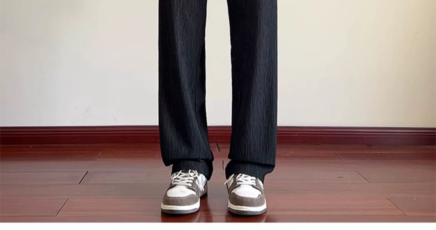 Прямые брюки из ледяного шелка с текстурой, модные мужские брюки на лето, большой размер, свободные, тонкие, легкие