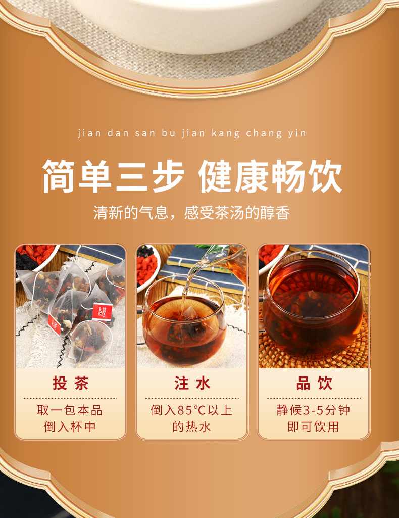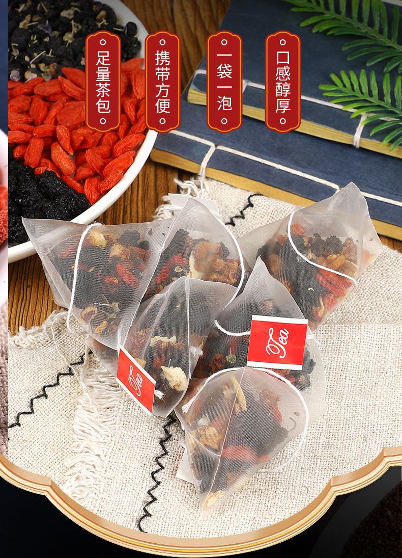 чай с женьшенем и шелковицей, чай с макой и ягодами годжи, мужской чай Бабао, анхуйский травяной чай