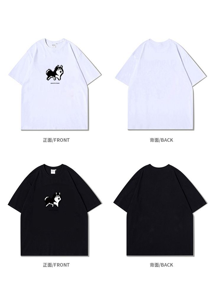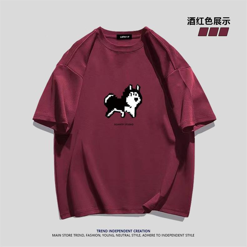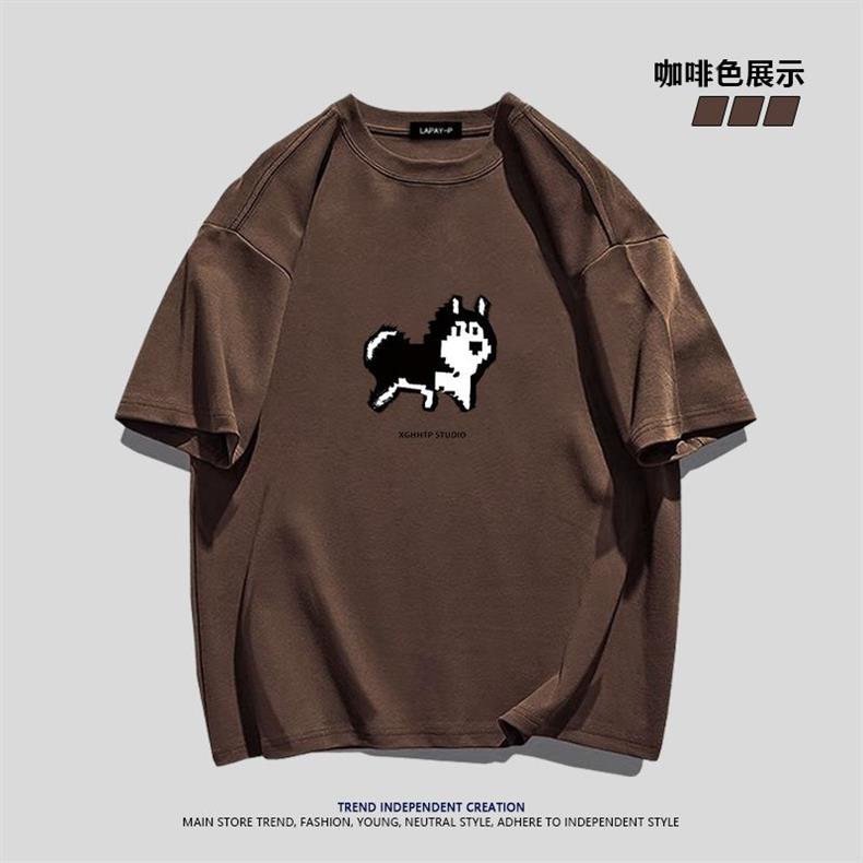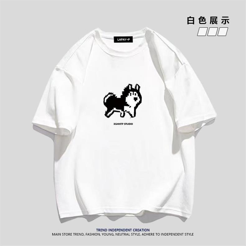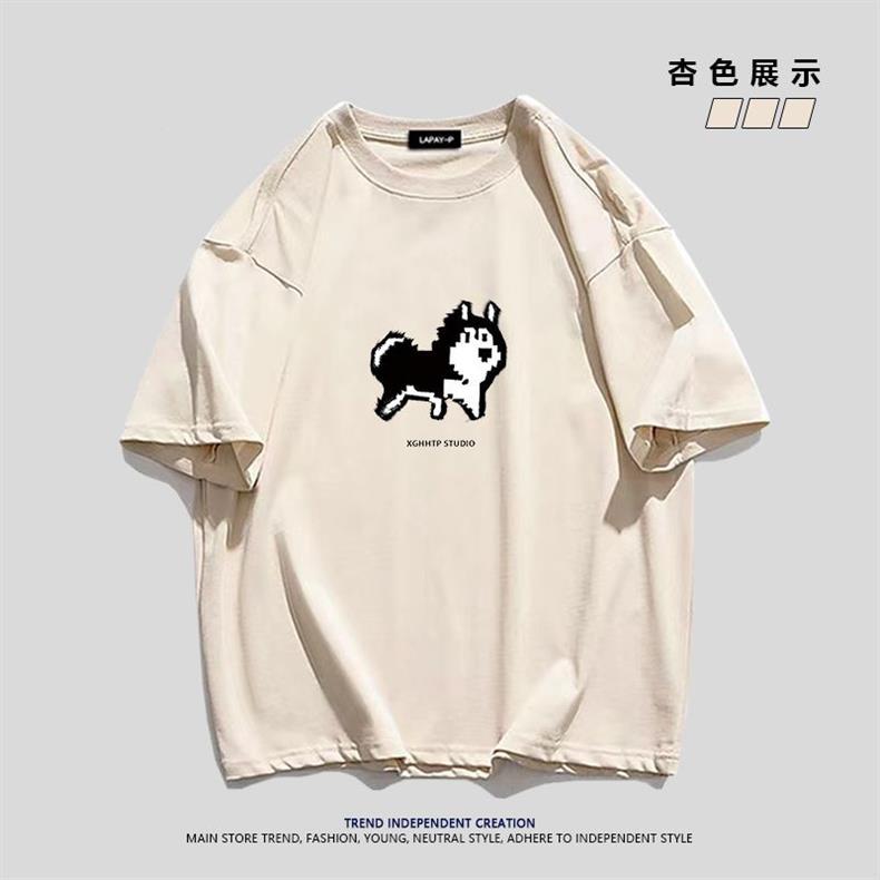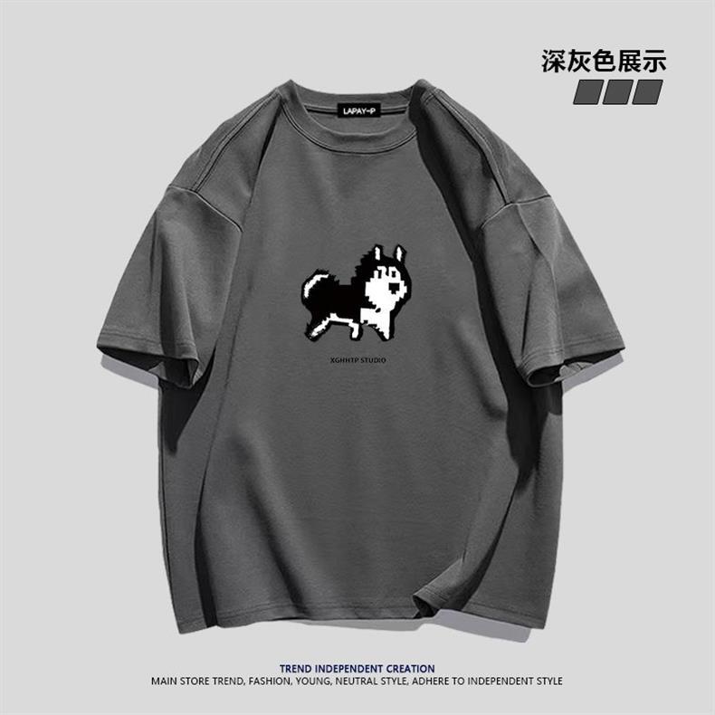 Футболка из тяжелого хлопка с простым мультяшным пиксельным хаски, короткий рукав, для мужчин, летняя повседневная свободная