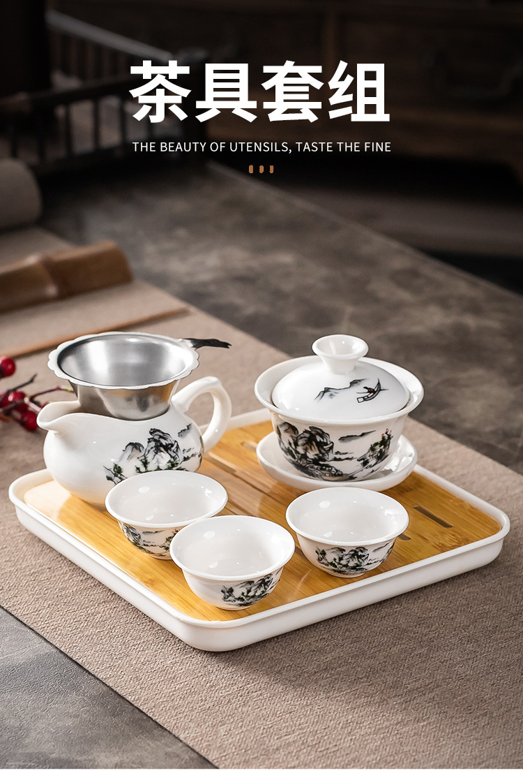 Набор кунг-фу чая для дома, одна крышка, три чашки, простой набор для приготовления чая, керамические чашки, поднос для сухого чая