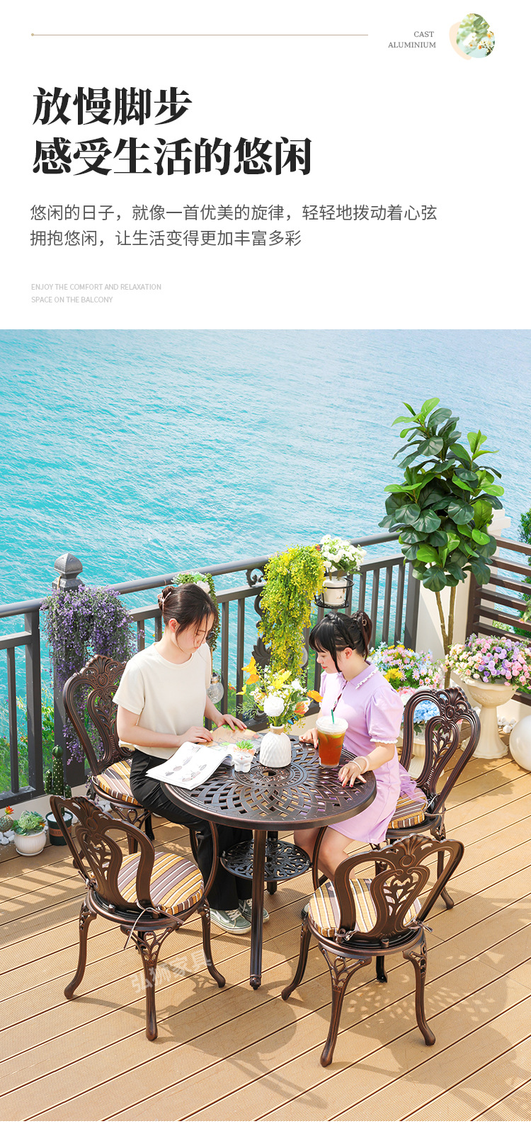 Заводские уличные столы и стулья, садовый обеденный стол из литого алюминия, круглый стол для террасы