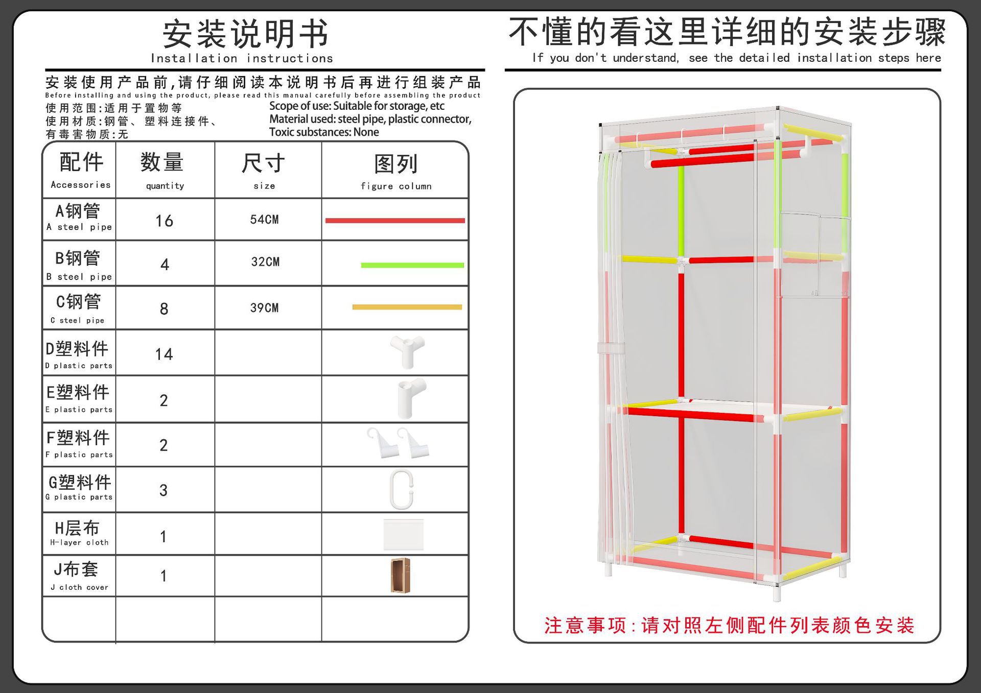【商品材质】 PP塑料+12mm镀锌管+无纺布