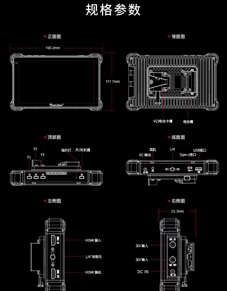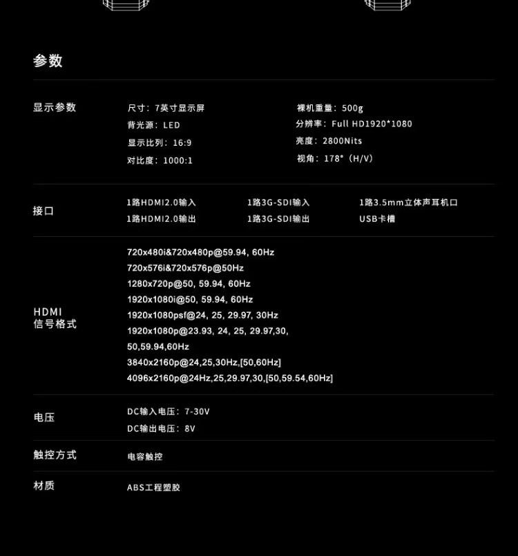 Baishiyue R7SIII2800 Nits, монитор с высокой яркостью, третье поколение, HDMI вход и выход, 7.4 дюйма, K60HZ HD