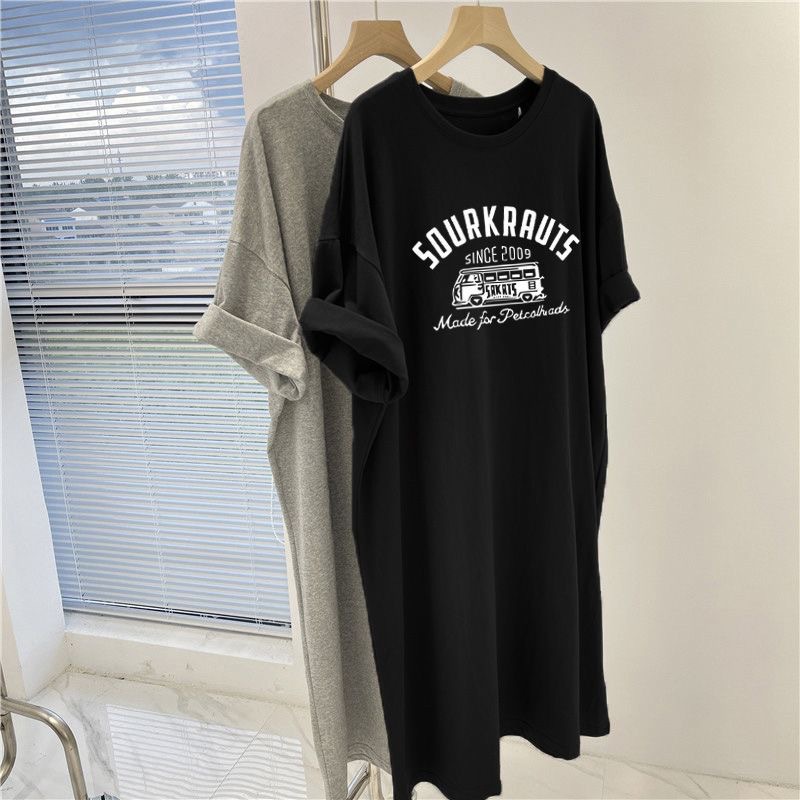 Платье для женщин большого размера в ретро стиле с короткими рукавами 2025 новое свободное платье с эффектом стройности средней длины с разрезом летом