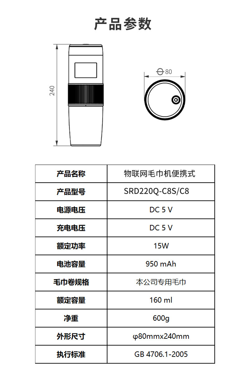 Wet wipes temperature Not adjustable, normal temperature or 45℃(supports direct addition of hot water)