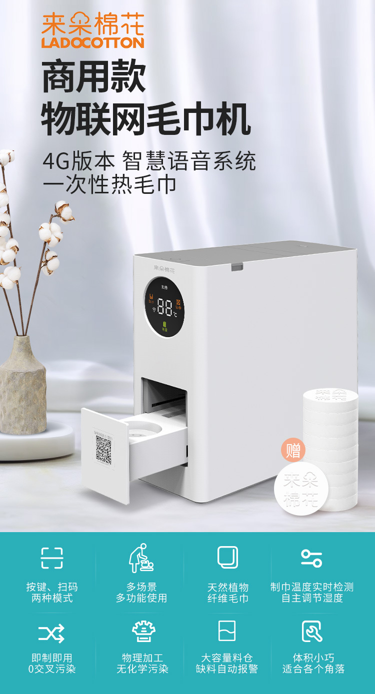 Коммерческая машина для полотенец Laiduo Cotton IoT W2S, сжатое полотенце из растительных волокон, интеллектуальная нагреваемая мягкая машина для полотенец