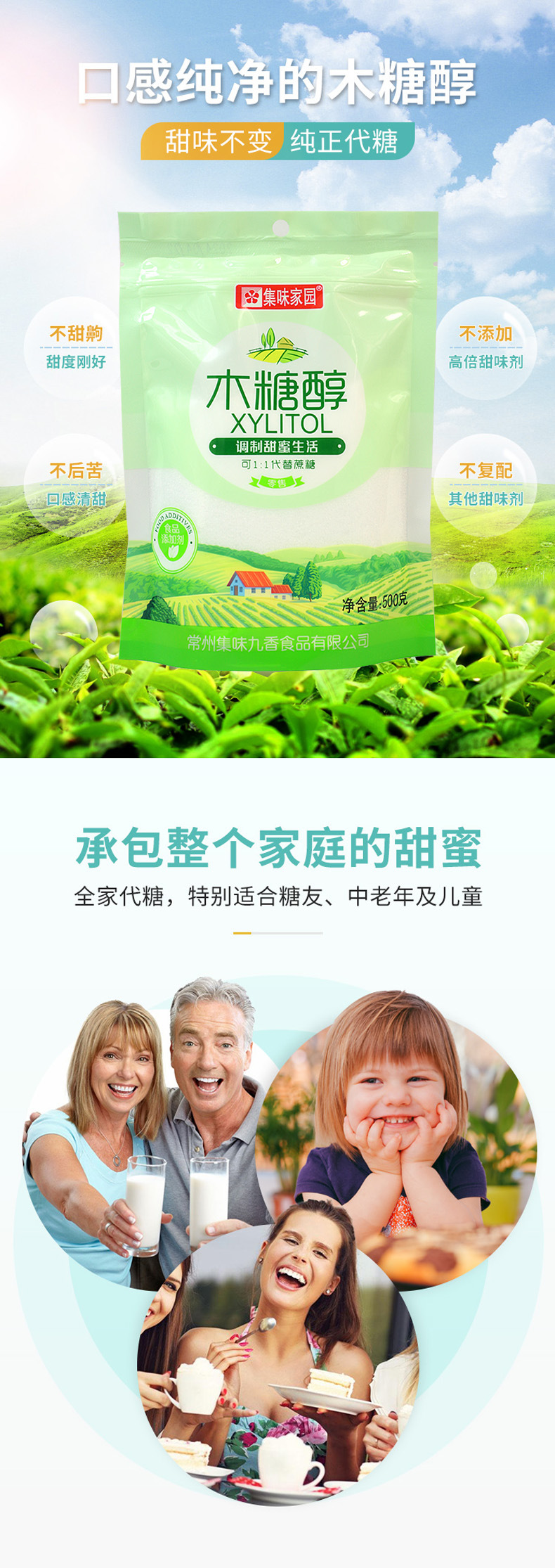 Безсахарный ксилит 500г, заменитель сахара для диабетиков, вместо белого сахара