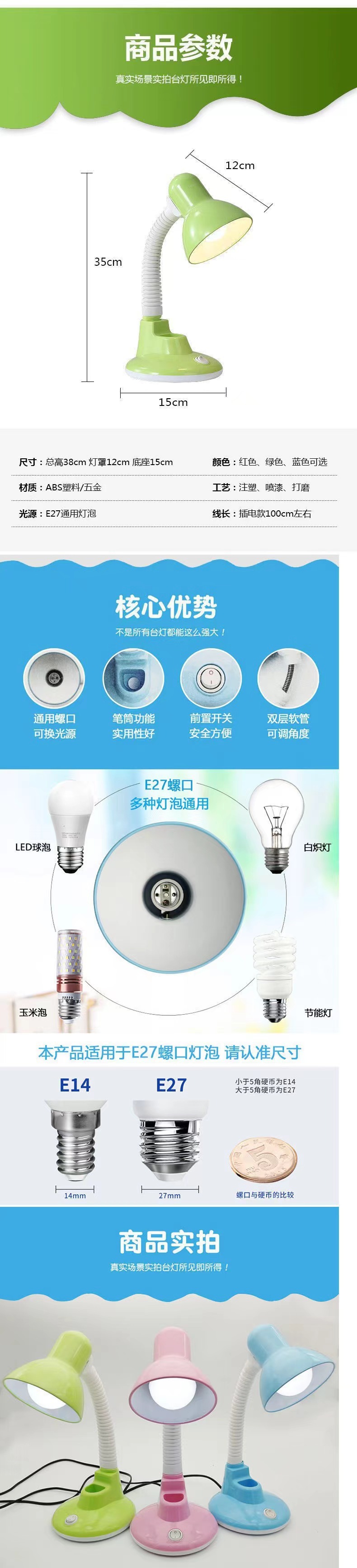 Импортная настольная лампа для учебы, защита глаз, для общежития, спальни, с LED-лампой