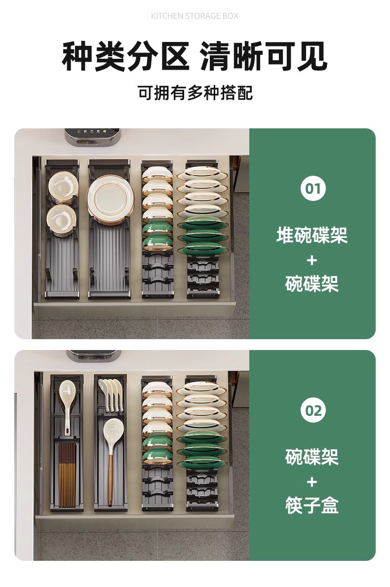 Подставка для посуды и хранения посуды, разделитель для ящика кухни, встроенные посуды и ящик для столовых принадлежностей