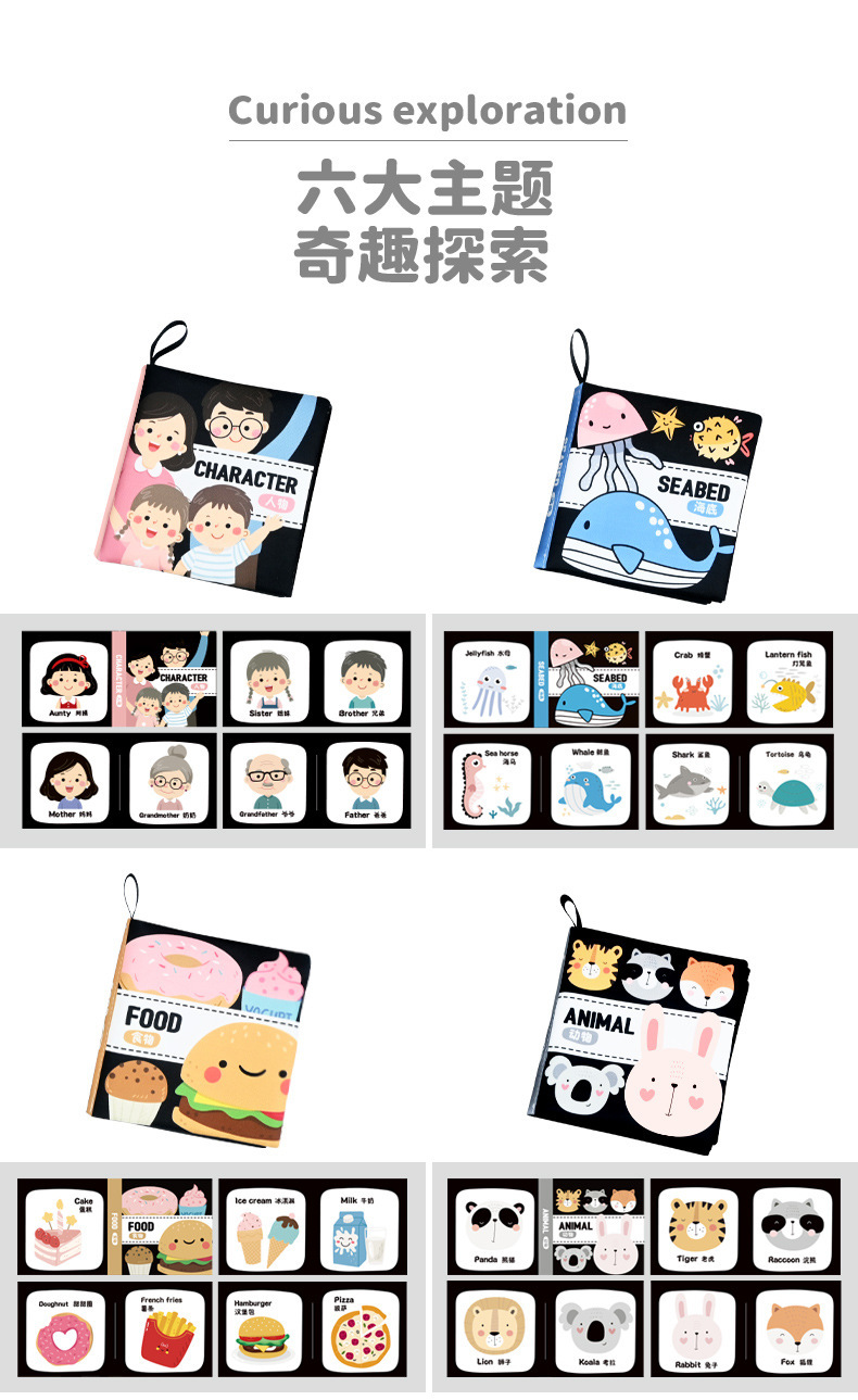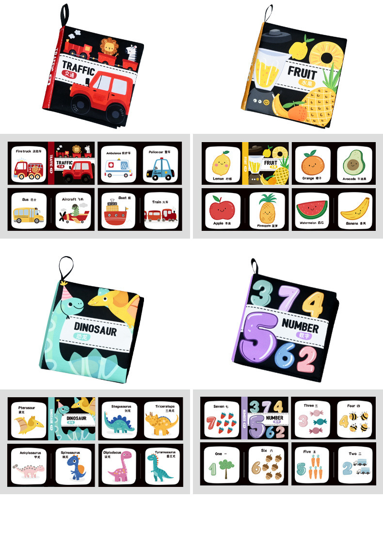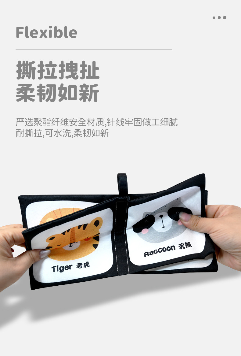 Новая книга из ткани, двуязычная, можно жевать, черно-белая, развивающая игрушка для детей