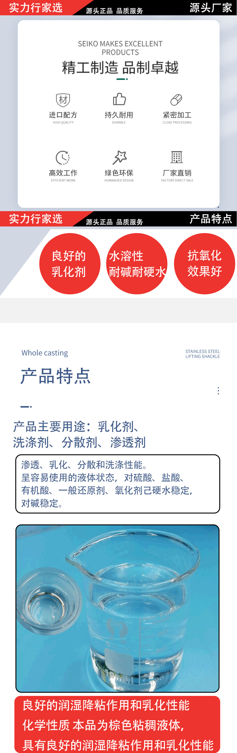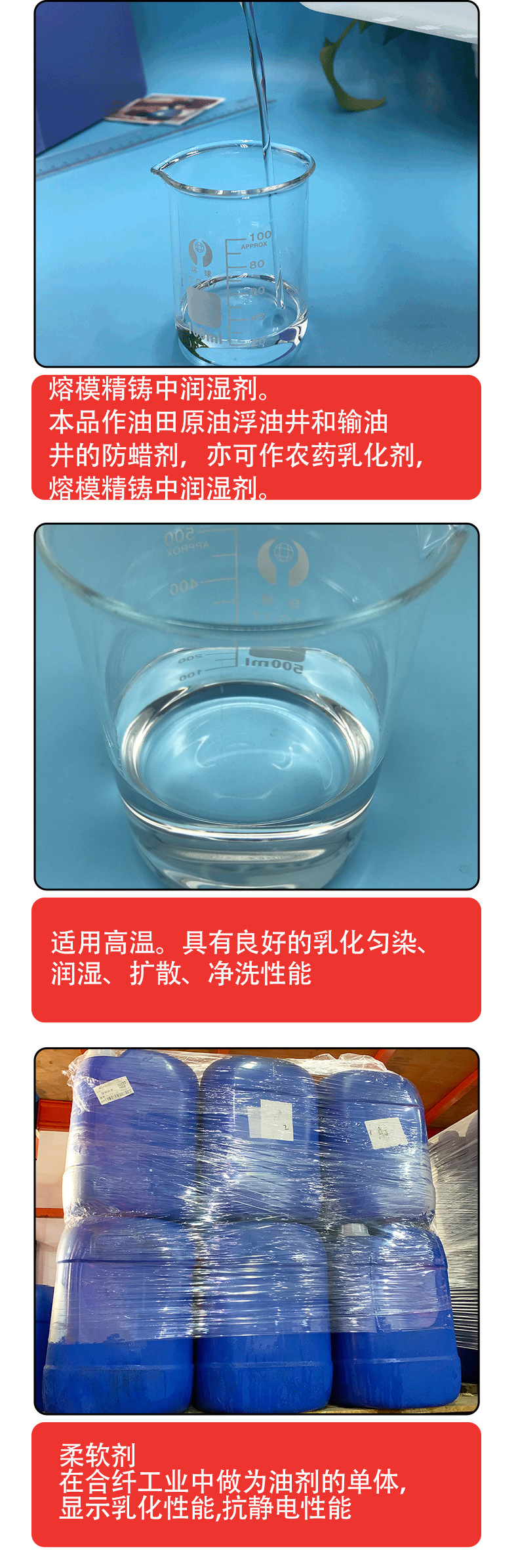 Цель Used for the main active components in detergents and industrial cleaning agents; pesticide emulsifier and wetting agent, pigment dispersant, emulsifier, etc. in paints
