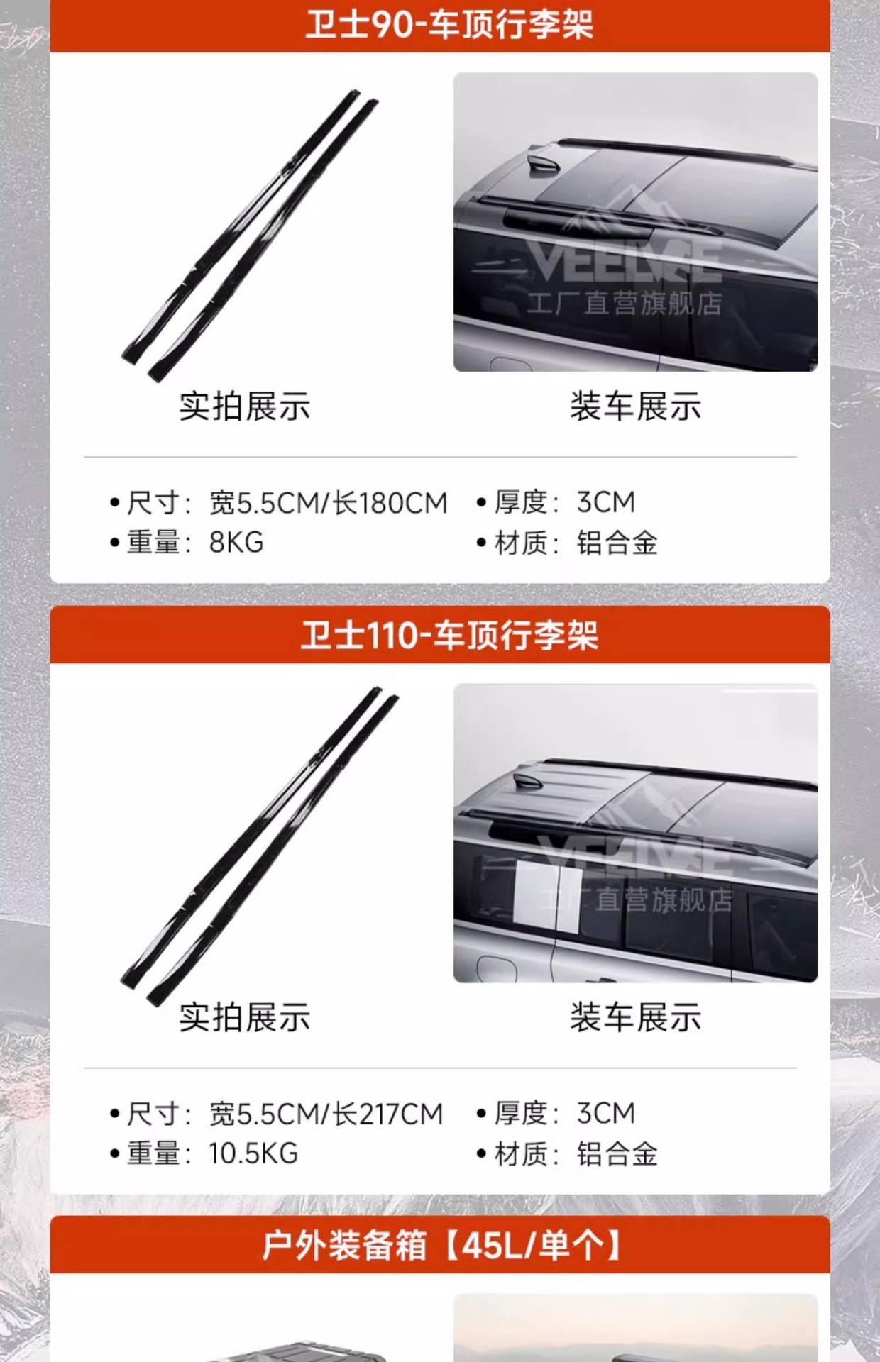 ![]() | 90/110/130 [Expedition Luggage Frame-Aluminum Alloy Bracket] Silver Black-Remarks Model | ¥2700.0 / ≈ 32 842 ₽ | 500 | 5639249831880 | |