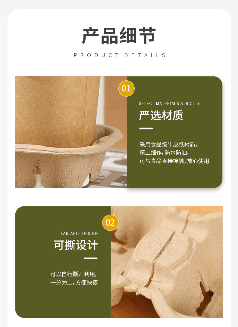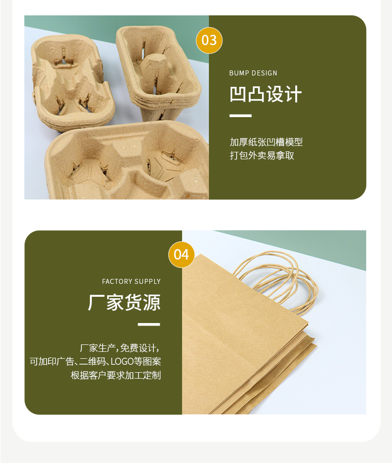 Одноразовый биоразлагаемый держатель для стаканов, для кофе и молочного чая, на один, два или четыре стакана
