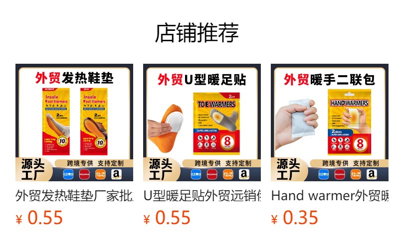 ![]() | U-shaped foot warmers (single piece does not include bag) | ¥0.12 / ≈ 1 ₽ | 0 | 6055475306839 | |
