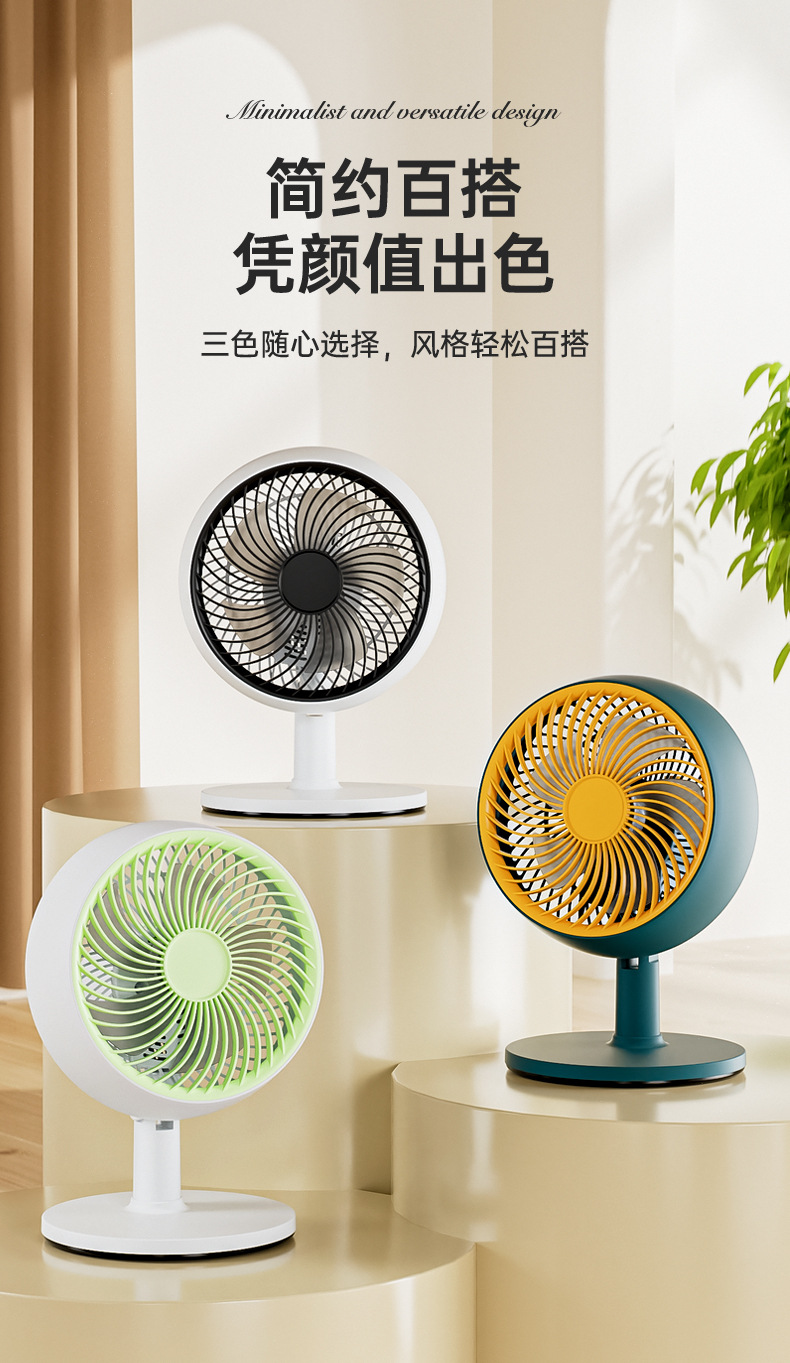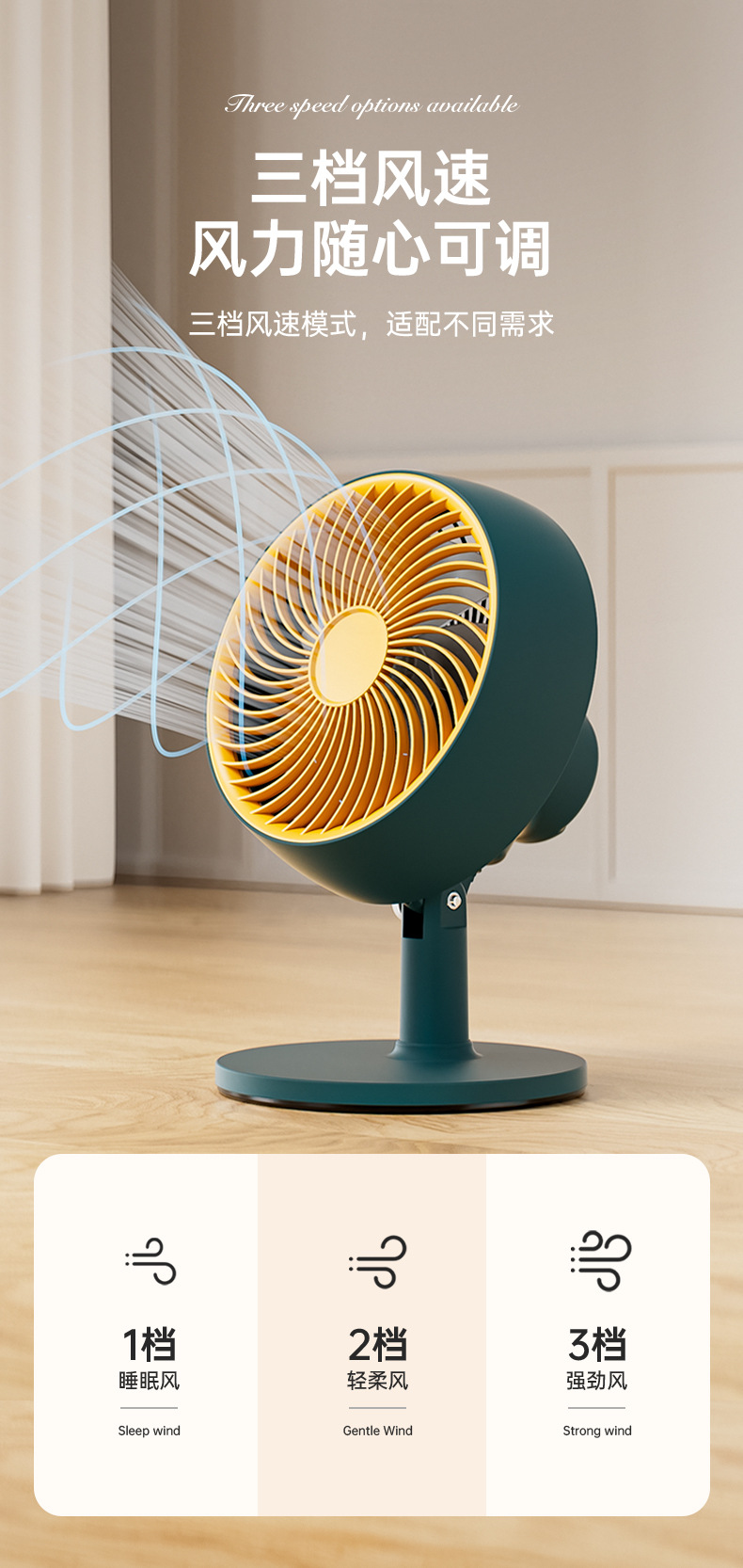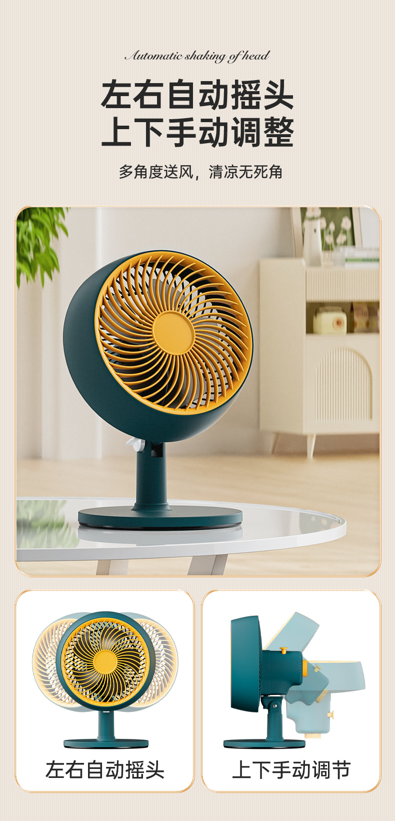 Настольный электрический вентилятор, компактный, с автоматической функцией наклона, для спальни и офиса