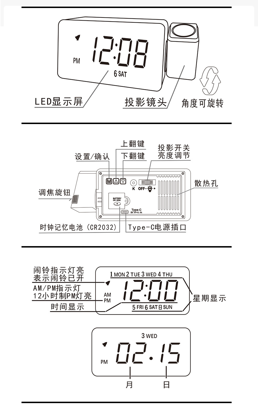 Кросс-бодер новые деревянные часы деревянные проекторные часы с USB-розеткой цифровые часы двойные будильники