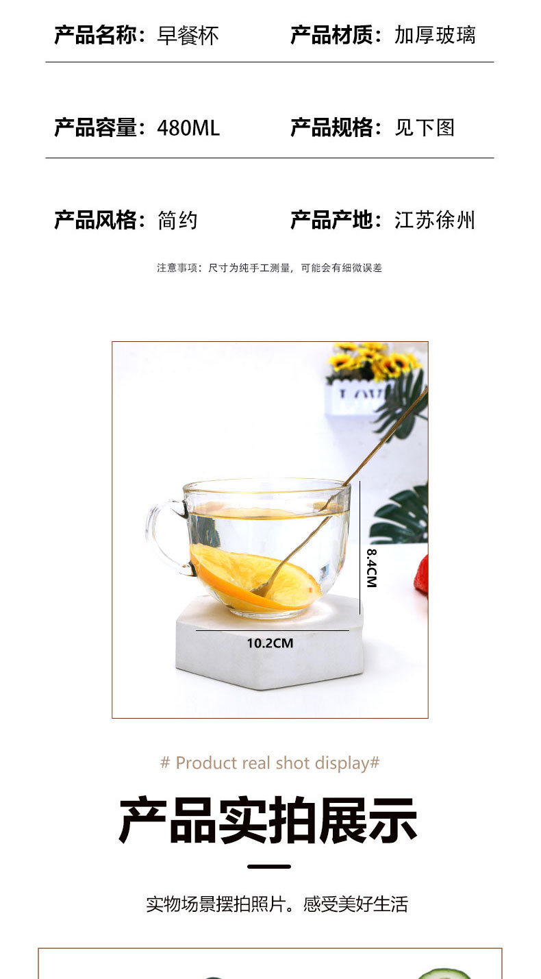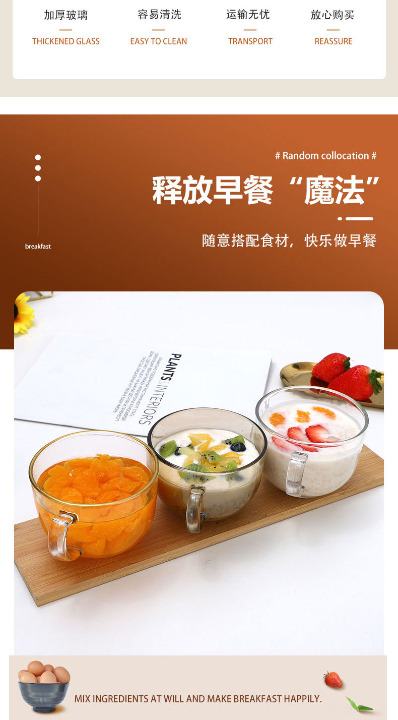 Стеклянная чашка для завтрака с ручкой, стильная чашка для молока и кофе