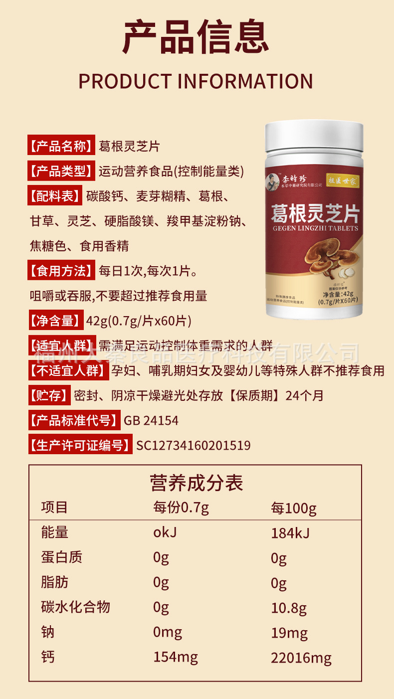 Название продукта Li Shizhen Zuyi Shijia Pueraria Lingzhi Tablets