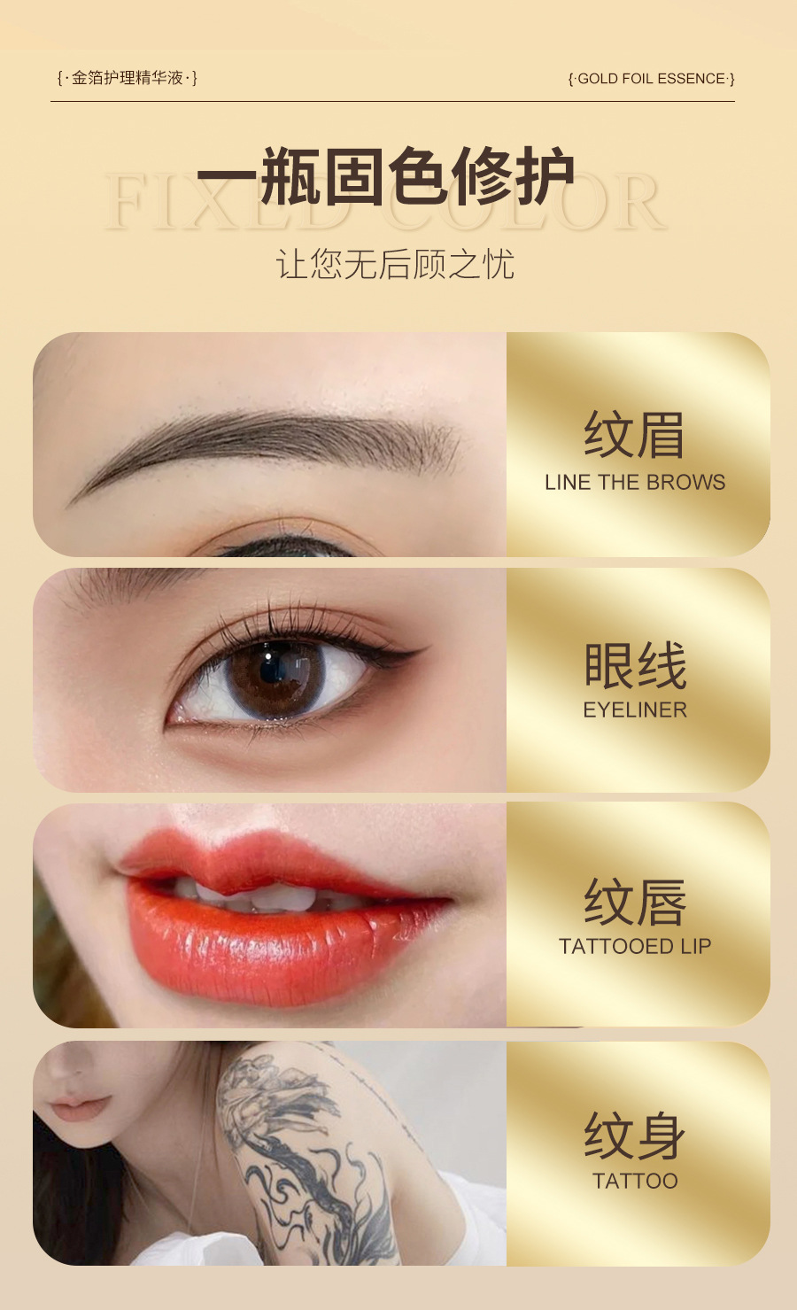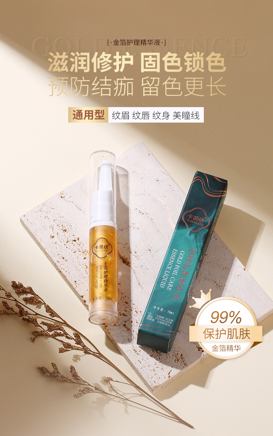 Крем для восстановления татуажа бровей и губ с золотым фольгированием, жидкость для восстановления, фиксатор цвета, без корки
