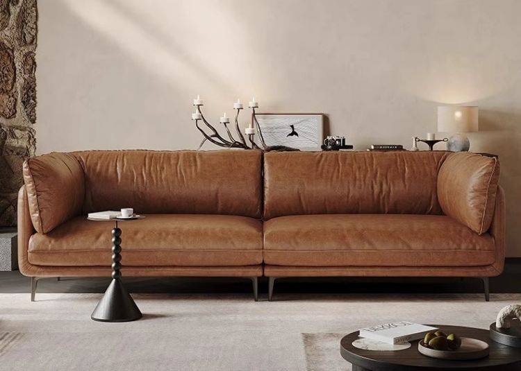 Винтажный диван из восковой кожи итальянский минимализм из высококачественной кожи для гостиной в стиле середины века