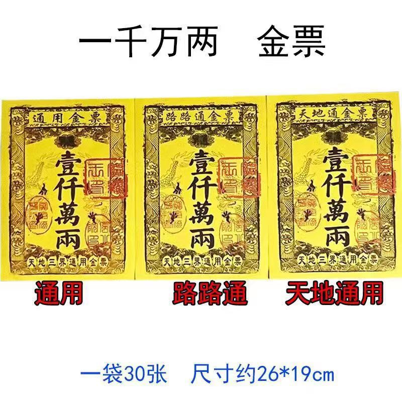 Мешок из 30 универсальных золотых билетов, золотых билетов Passepartout, желтых билетов, бумаги для сжигания, поклонения Будде и посещения могилы, желтой бумаги, бумаги для сжигания, серебряных билетов
