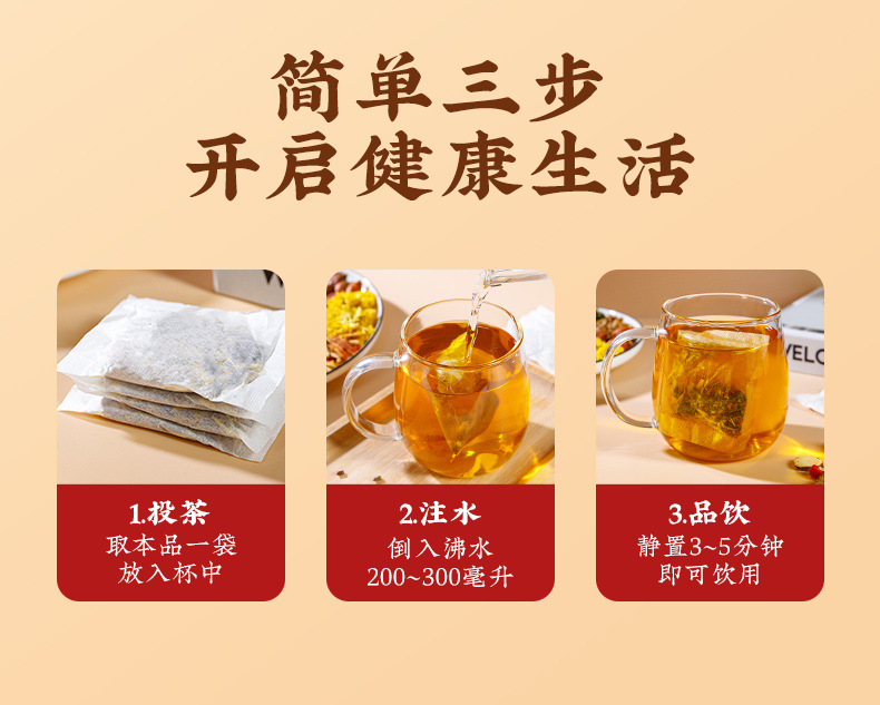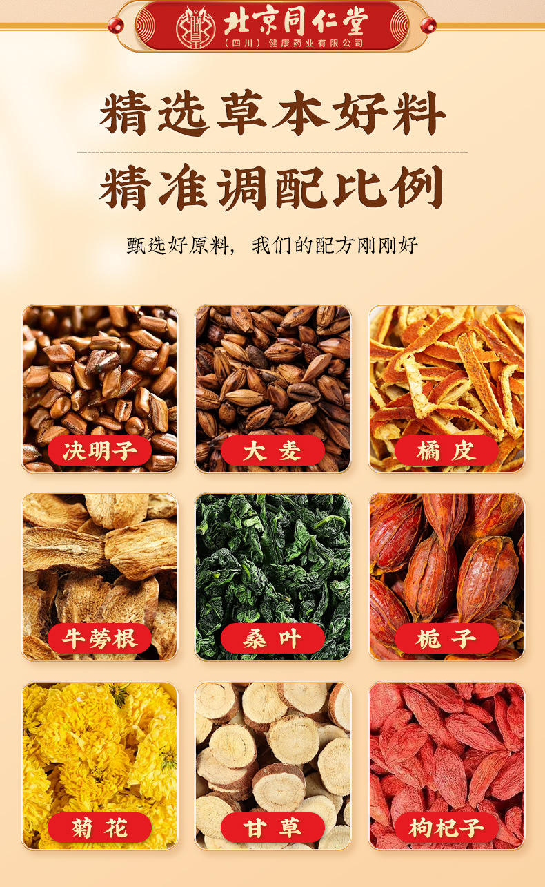 Сырьё и ингредиенты Cassia seed, barley, orange peel, medlar, burdock root, mulberry leaf, gardenia chrysanthemum, licorice