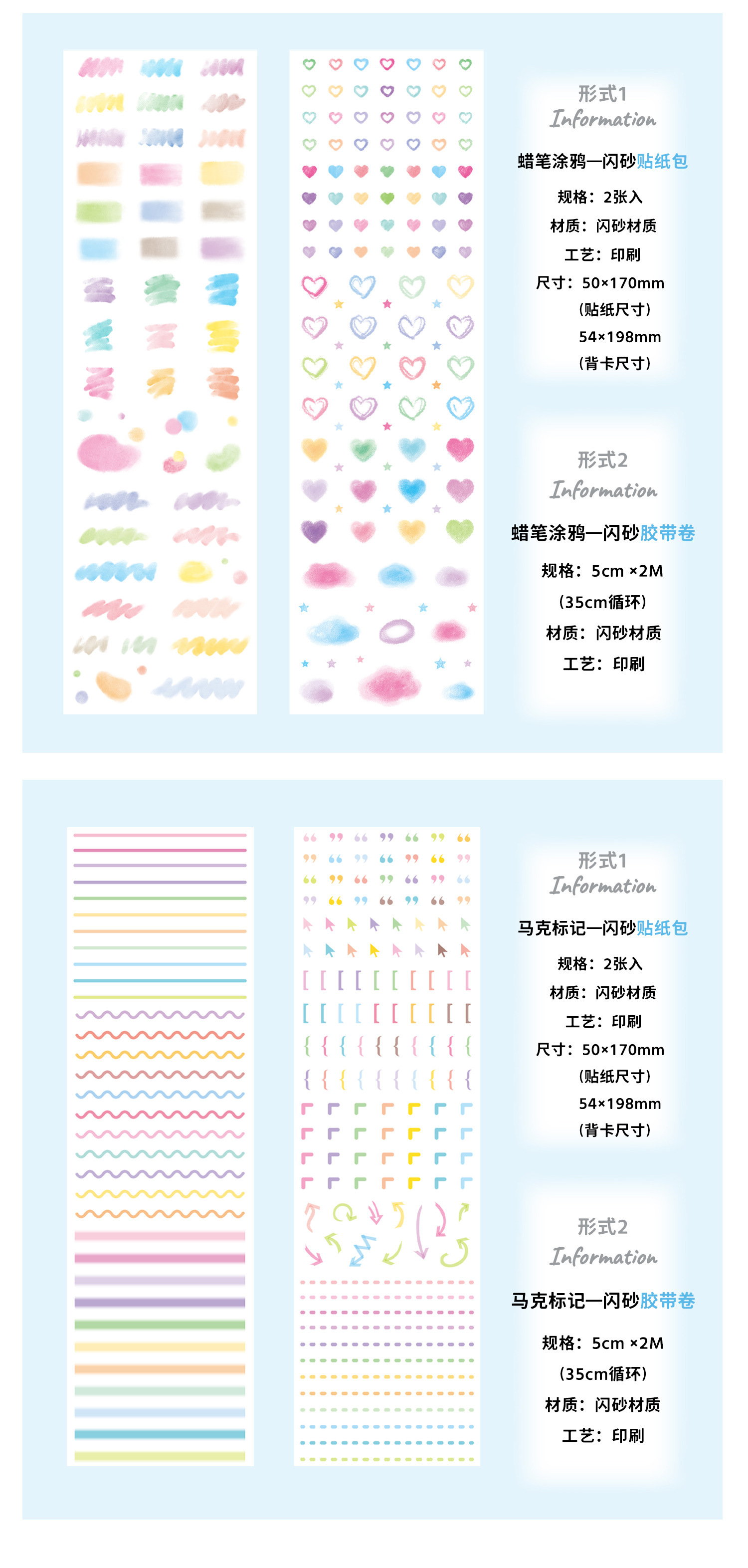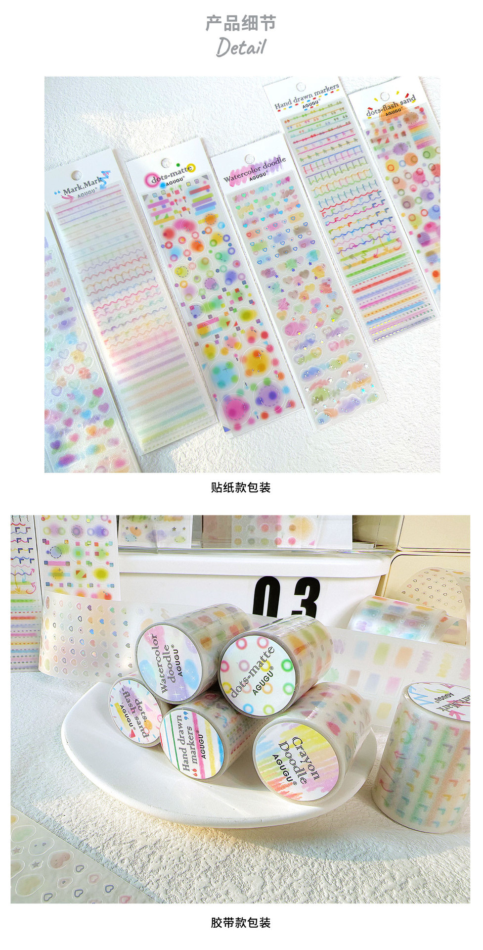 备注:贴纸包和胶带卷的图案一样哦~~