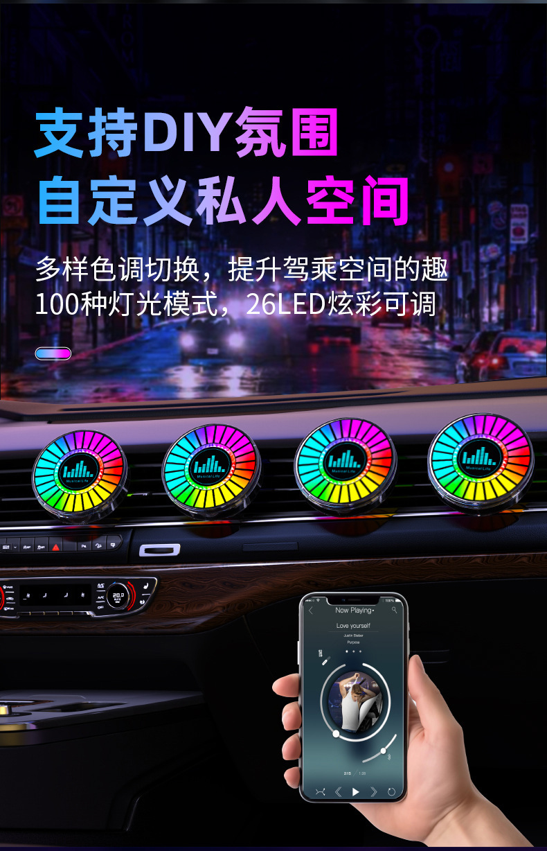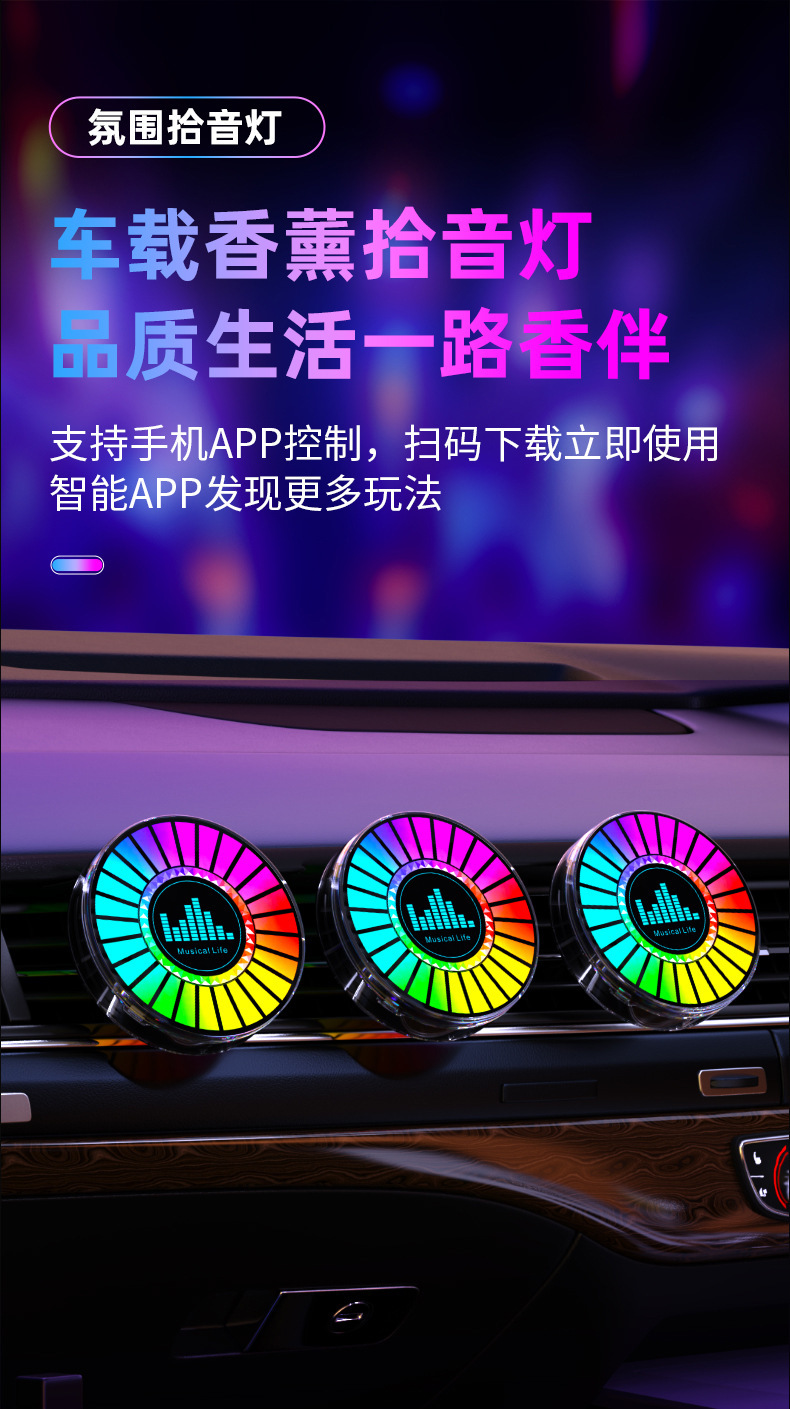 Кросс-бордерный новый RGB светильник для звукового захвата, 3D атмосферный свет, свет для автомобиля, ароматерапия, управляемый голосом, LED ритмичный свет
