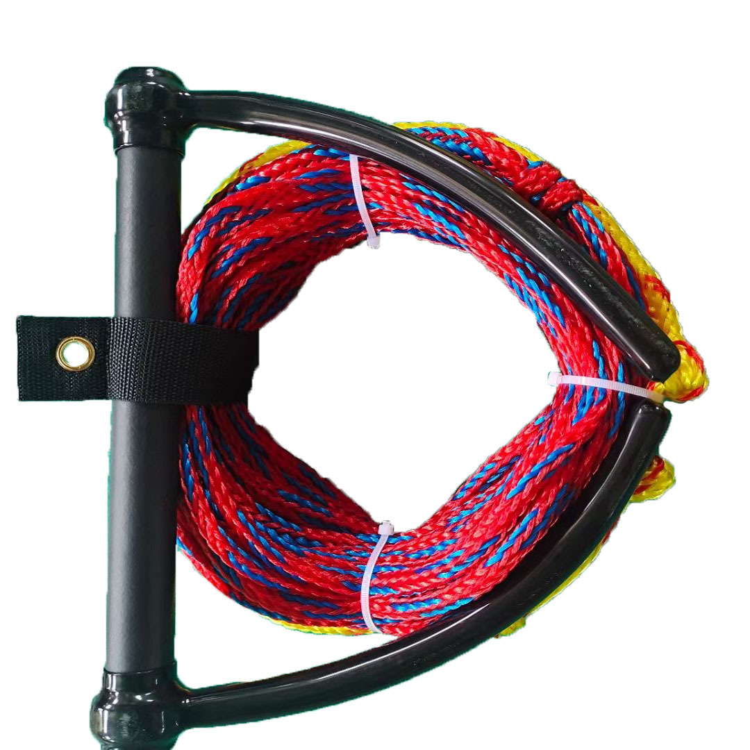 该款水上运动滑水绳同时可以用于滑雪、水上滑板、冲浪板,同时也可用于水上充气艇等水上动力的牵引拖拉用绳。该款适合青少年及女士滑水运动使用。