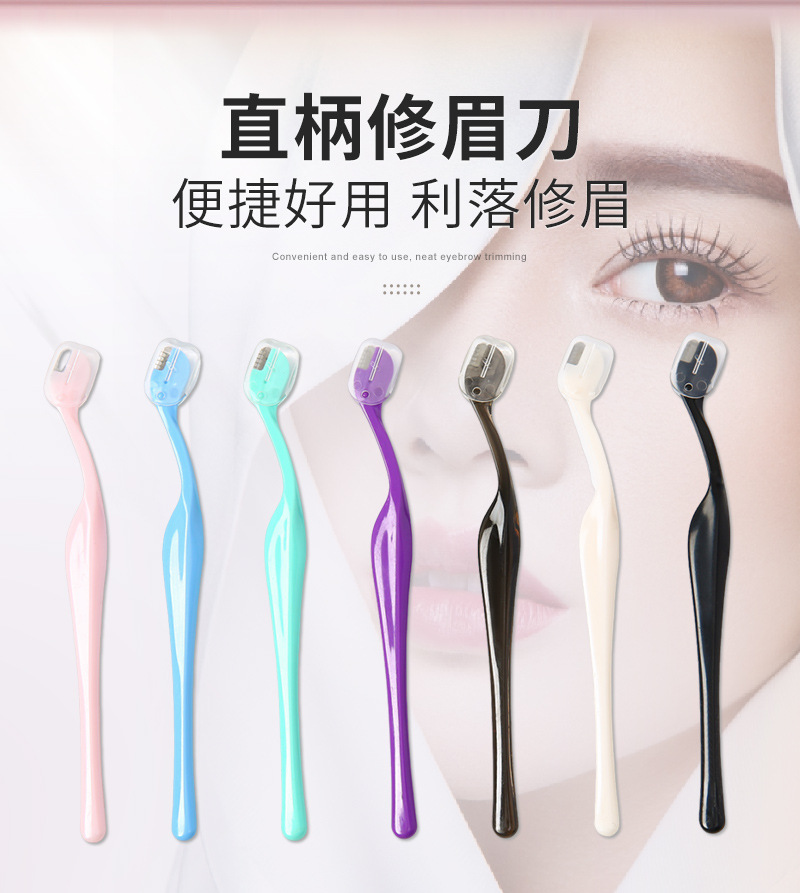 Длинная ручка многоцветного ножа для бровей, лезвие из нержавеющей стали, женские инструменты красоты, оптовая продажа