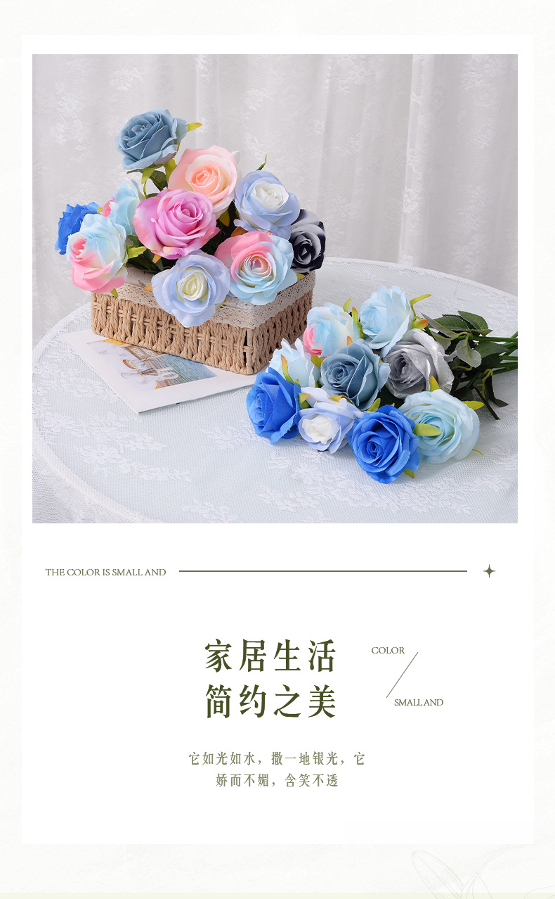 Ледяная Голубая Искусственная Роза Одинокий Европейский Стиль Искусственный Цветок Декорация для Свадьбы