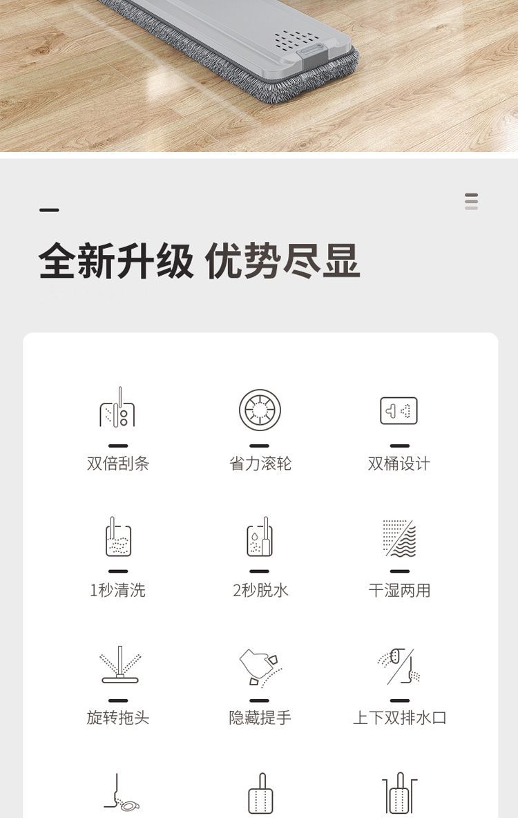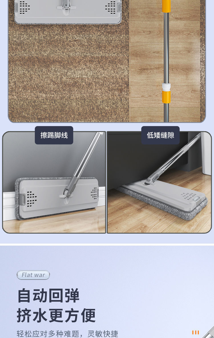 Моп без рук домашний одноразовый 2024 новый плоский для сухой и влажной уборки с ведром, артефакт для ленивой уборки