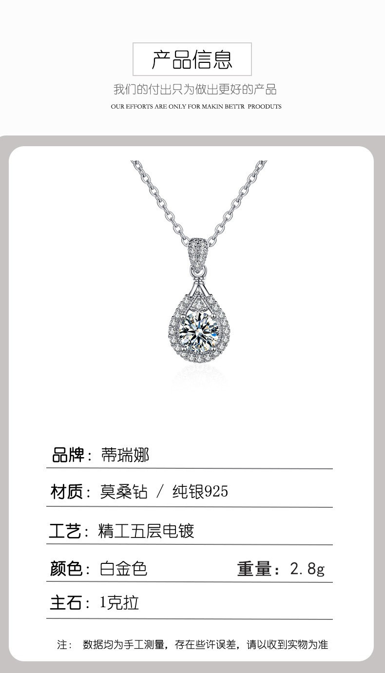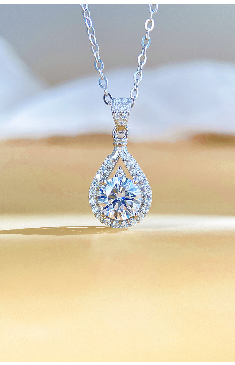 Ожерелье из S925 стерлингового серебра Ожерелье из моиссанита Подвеска в форме капли воды Цепочка на ключицу Seiko Высокий легкий люкс Оптовая продажа с завода