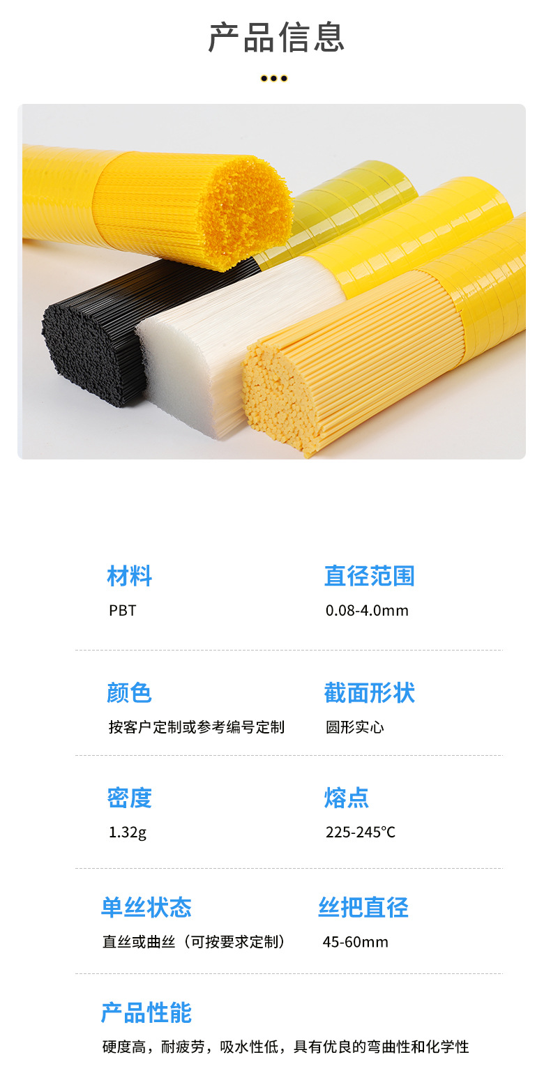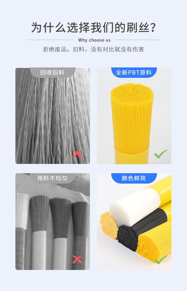 Мягкий, высокоэластичный, износостойкий PBT щеточный филамент, высококачественное специальное предложение, красочная промышленная поддержка, настраиваемая высокая эластичность